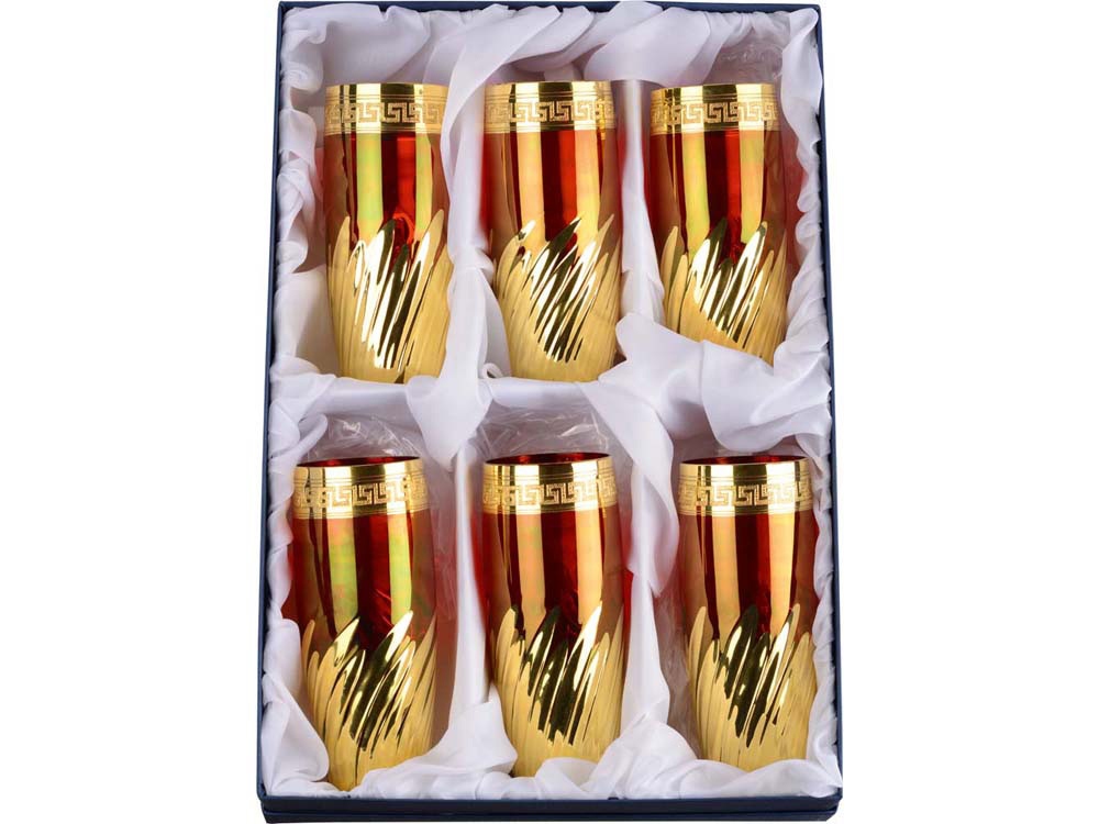 Яркий набор коктейльных стаканов рассчитан на 6 персон. Набор выполнен из цветного стекла и украшен золотистым декором. Набор позволит отметить торжество в кругу близких друзей и партнеров по бизнесу. Шильд спектрум (Шильд спектрум) на данный товар осуществляется бесплатно. Оплачивается только настройка оборудования в размере 1100 рублей на весь тираж.