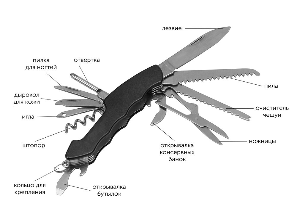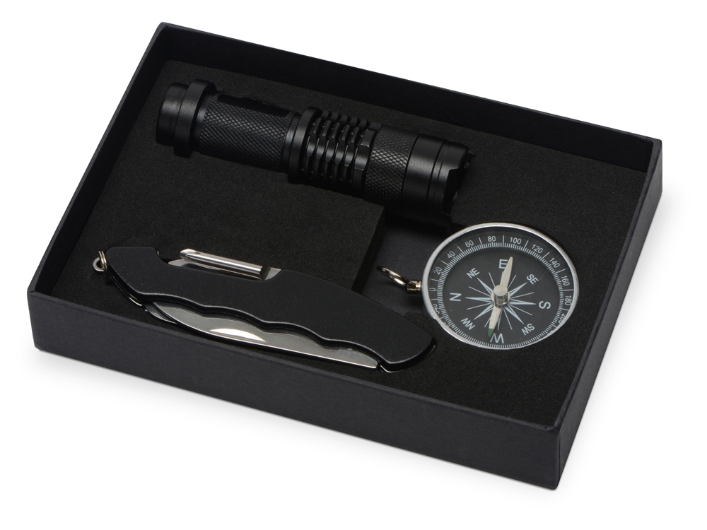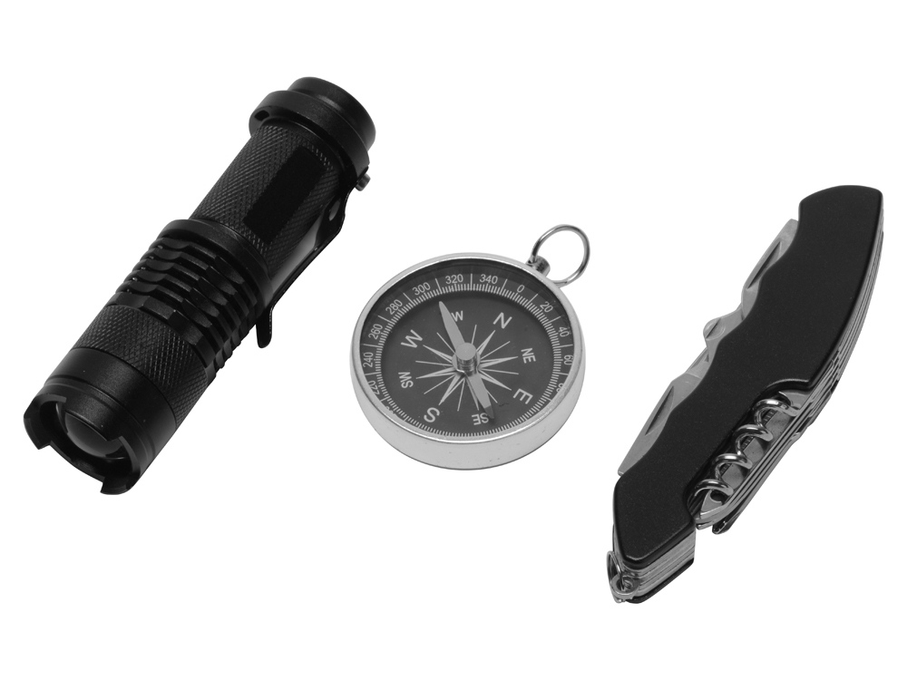 Набор Decker - отличный подарок для всех любителей приключений и активного отдыха на природе. В него входит мультитул, фонарик и компас. Мультитул имеет 12 функций: лезвие, ножницы, пила, очиститель чешуи, открывашка для консервных банок, штопор, открывашка для бутылок, отвертка, кольцо для подвешивания, дырокол для кожи, пилка для ногтей и игла. Фонарик работает с помощью 1 батарейки формата АА. Батарейка в комплект не входит.
