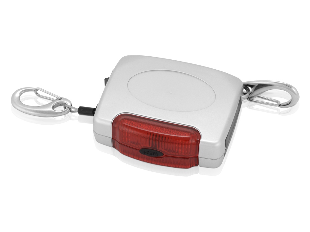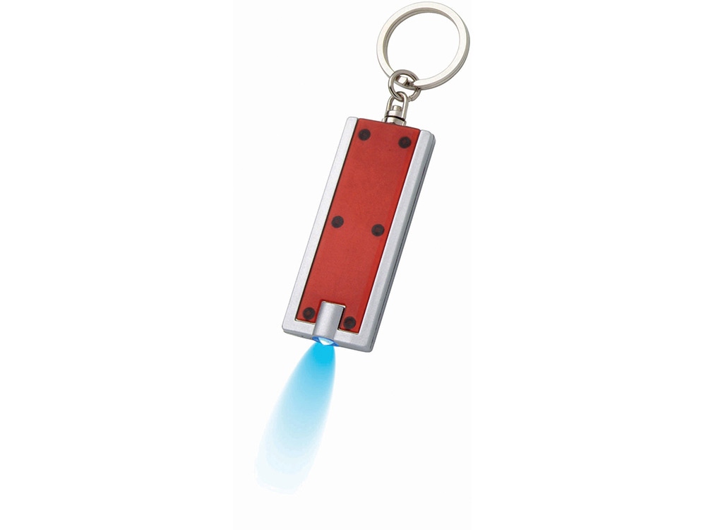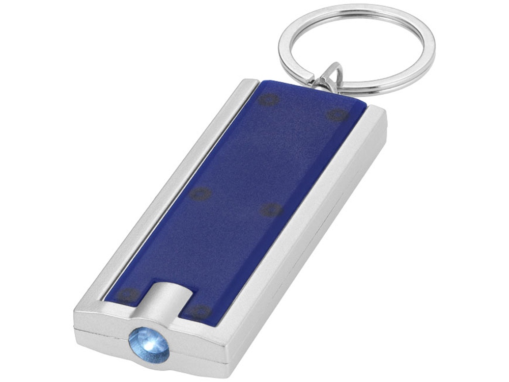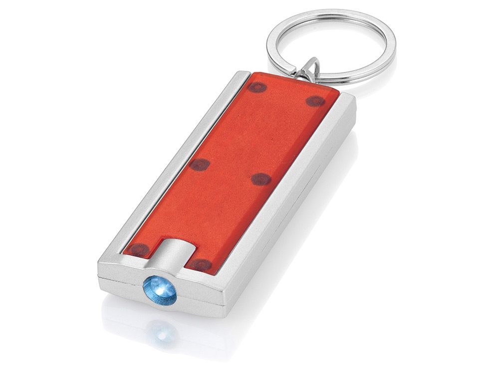 Брелок-фонарик Castor. Брелок с ярким светодиодным фонариком с кнопкой. Металлическое кольцо для ключей. Батарейки включены в комплект. АБС-пластик. Тампопечать (1 цвет (цветные изделия)) на данный товар осуществляется бесплатно. Оплачивается только настройка оборудования в размере 8200 рублей на весь тираж.