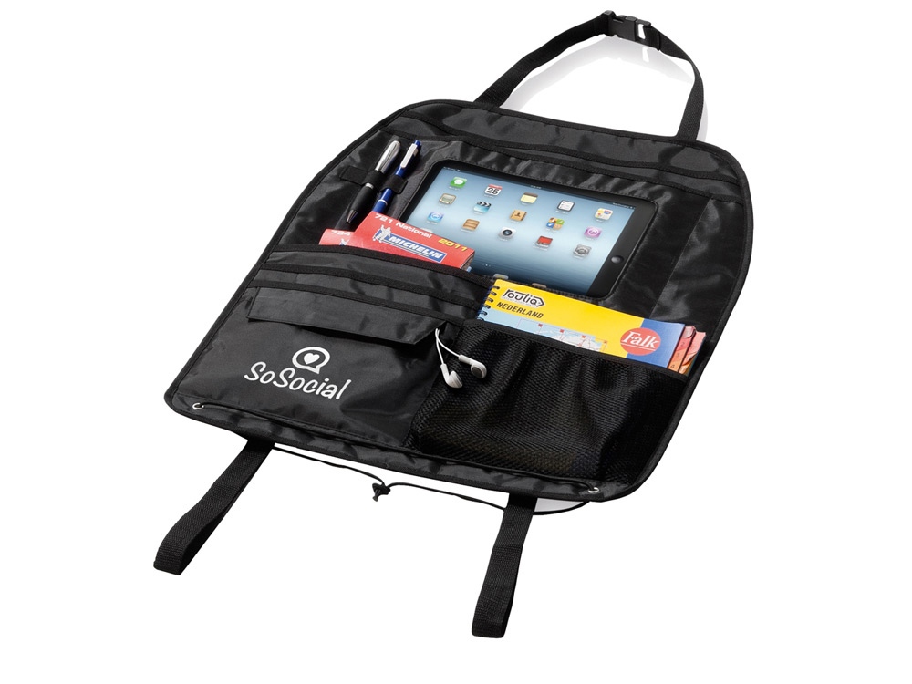 Девайс для тех, кто ценит свое время! Возможность исключительно удобно организовать рабочее пространство прямо в автомобиле дарит органайзер Калви. Специальные отделение для планшета, авторучек и документов, застегивающееся отделение, шнурки для крепления. Термотрансфер (1 цвет (цветные изделия)) на данный товар осуществляется бесплатно. Оплачивается только настройка оборудования в размере 10000 рублей на весь тираж.