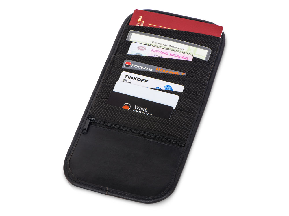 Универсальный органайзер на козырек автомобиля. Крепится на эластичные крепления. Имеет 12 карманов и отделение на молнии для расположения банковских карт, документов и других мелочей. Органайзер легкий по весу, не мешает обзору водителя. Тиснение (Блинт) на данный товар осуществляется бесплатно. Оплачивается только настройка оборудования в размере 6200 рублей на весь тираж.