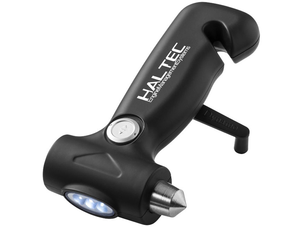 Инструмент 3 в 1 для чрезвычайных ситуаций включает молоток для разбивания стекол, нож для ремней безопасности и динамо-фонарь. Крутите ручку для работы фонаря. Внешние батарейки не требуются. Резиновая ручка для удобного использования. Встроенный перезаряжаемый аккумулятор. Тампопечать (1 цвет (цветные изделия)) на данный товар осуществляется бесплатно. Оплачивается только настройка оборудования в размере 8200 рублей на весь тираж.