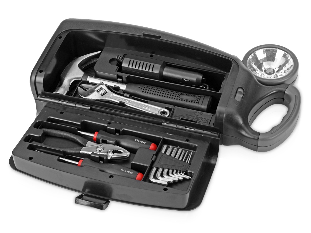 Набор позволит автовладельцам забыть о неприятностях в дороге. Содержит в себе самые необходимые инструменты и даже фонарик. Отвертки, ключи, плоскогубцы и многое другое в компактной упаковке просто обязаны быть в Вашем автомобиле. Прекрасный подарок для каждого водителя. Тампопечать (1 цвет (цветные изделия)) на данный товар осуществляется бесплатно. Оплачивается только настройка оборудования в размере 8200 рублей на весь тираж.
