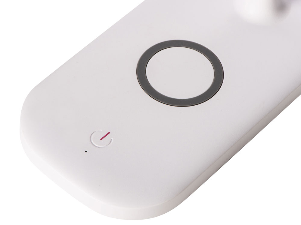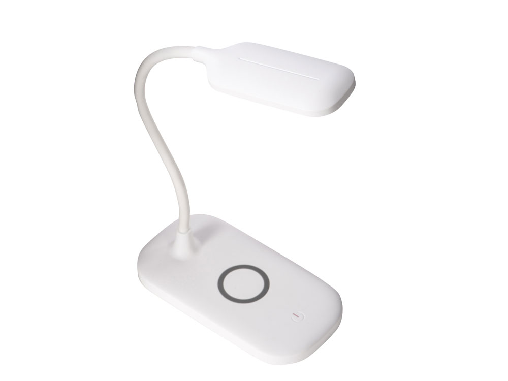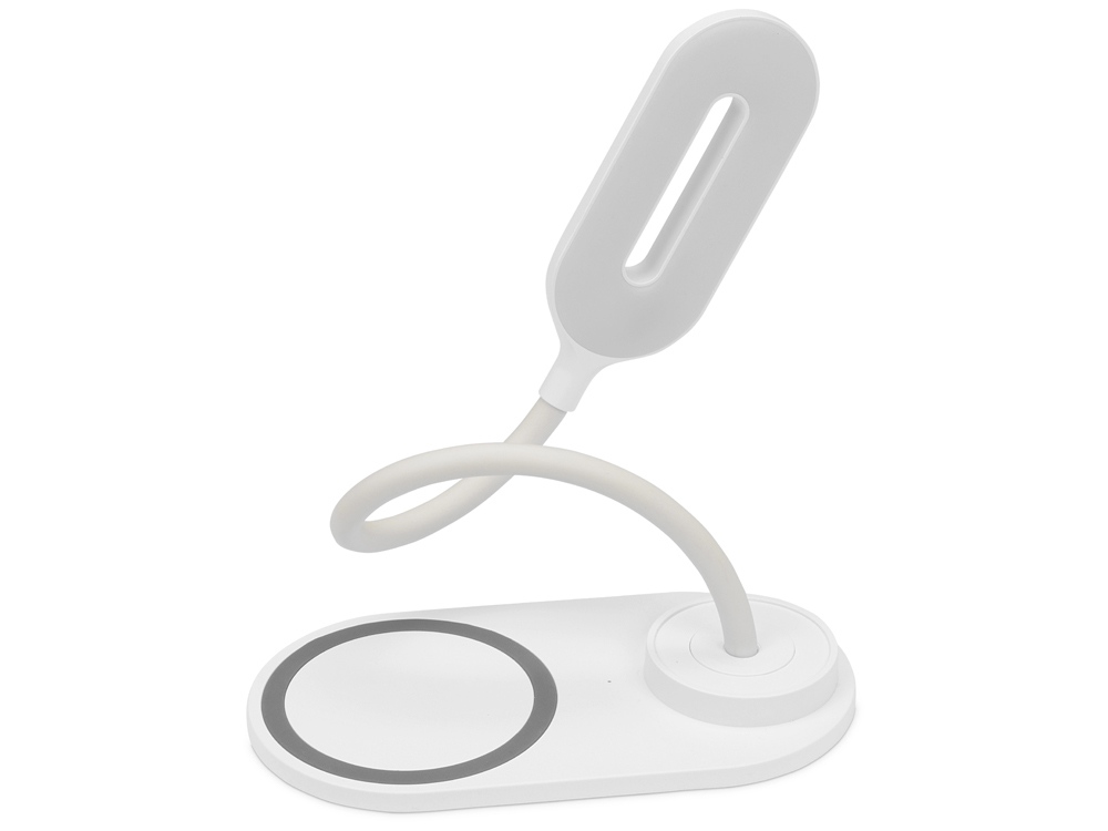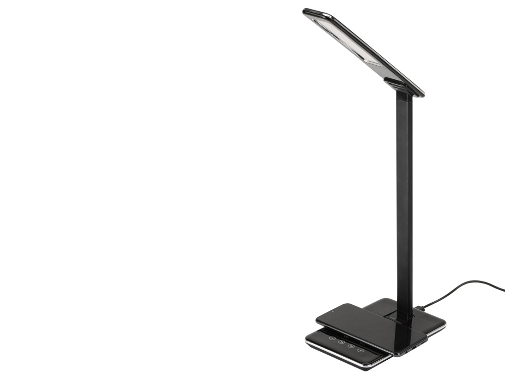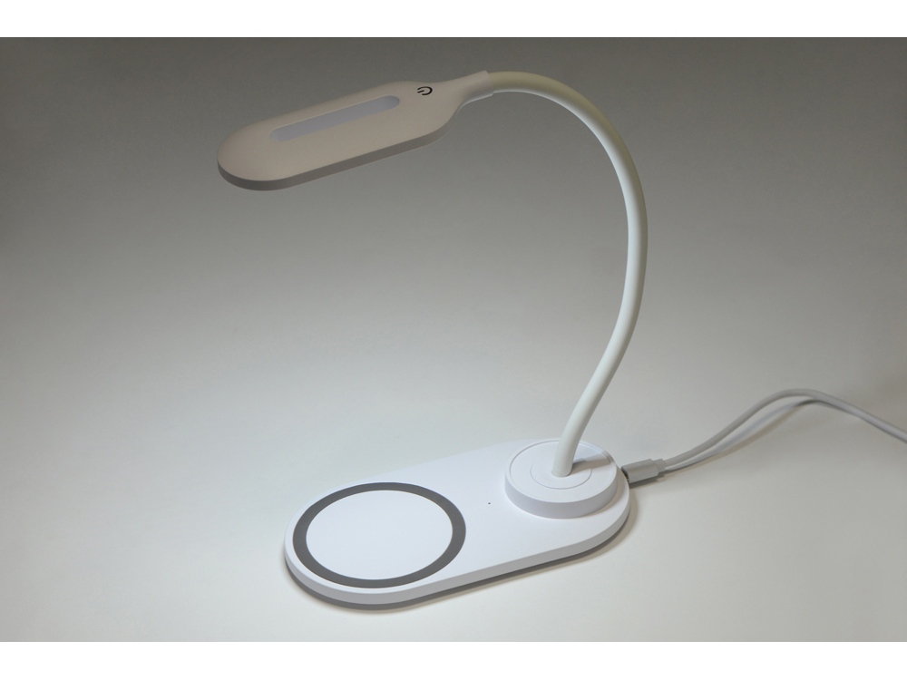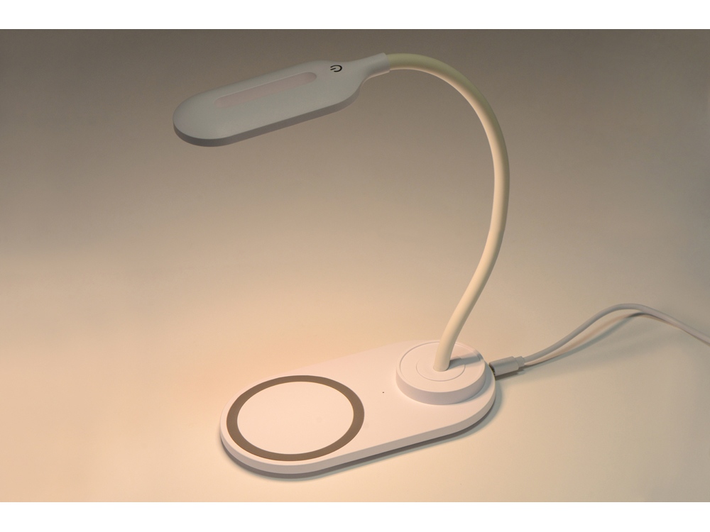 Светильник компактный, его можно зафиксировать в различных положениях. Имеет три режима освещения — теплый, нейтральный и холодный.- беспроводная зарядка Qi-совместимых устройств