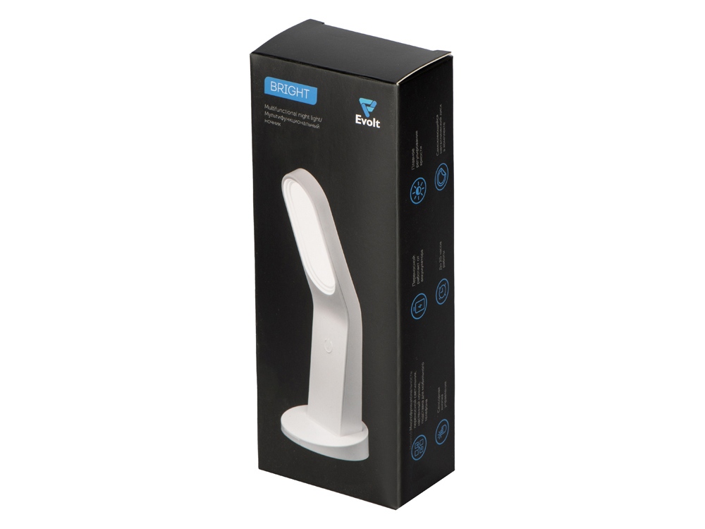 Мультифункциональный ночник Bright от Evolt можно использовать как настольную лампу на подставке, настенный светильник или даже в качестве держателя для мобильного телефона.