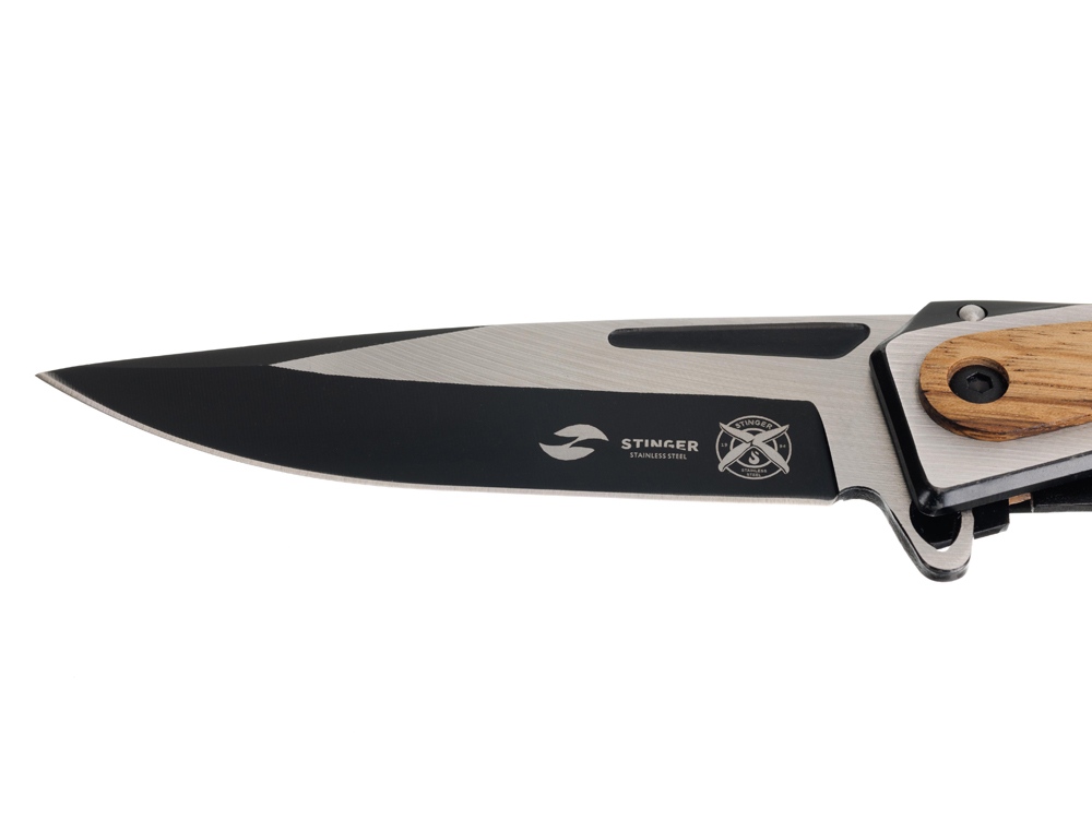 в наличии 0 штНОЖ СКЛАДНОЙ STINGER Повседневный нож для широкого спектра задач. Легкий и неприхотливый в обслуживании. Рукоять ножа произведена из нержавеющей стали с накладками из древесины, собрана на втулках — бонках, поэтому при необходимости нож можно легко промыть. Нож быстро открывается при помощи флиппера с ассистом (механизм ускоренного открывания). На рукояти расположено отверстие для темляка и клипса […]