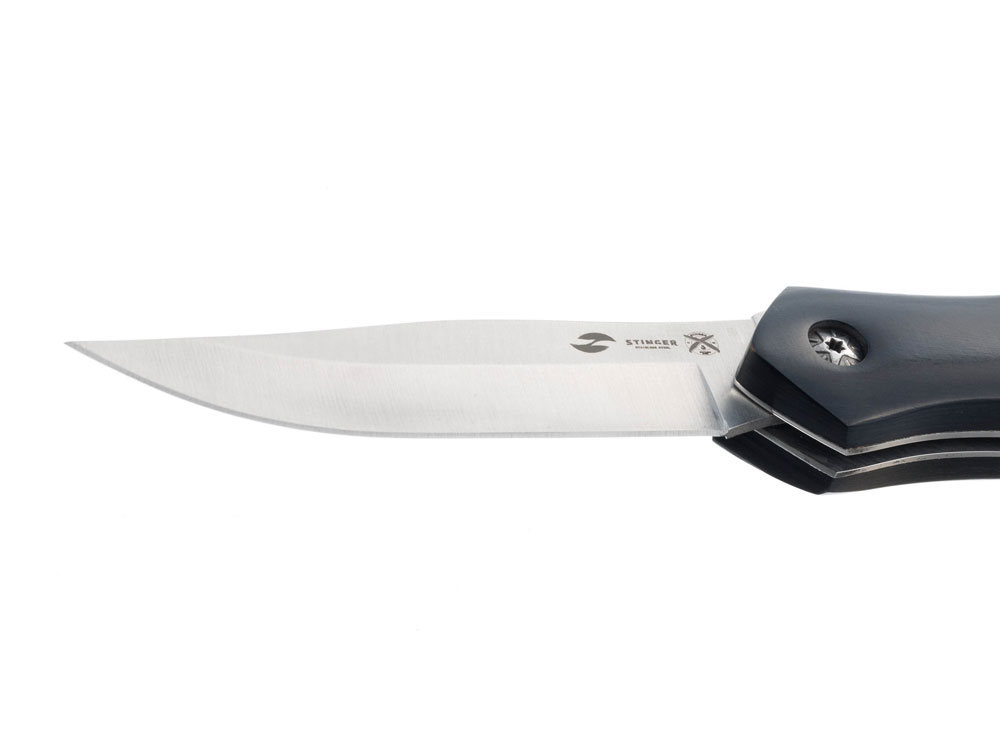 Клинок ножа произведен из жаропрочной мартенситной стали 3Cr13. Преимуществом этой стали является отличное противодействие коррозии благодаря высокому содержанию хрома (13%). Оптимальное содержание легирующих элементов в составе сплава 3Cr13 придает ему хорошую твердость в диапазоне 52-55 HRC. Из-за низкого содержания углерода (0,3%) заточку лезвие из такой сталь держит средне, но легко затачивается даже после активной эксплуатации ножа. При этом дополнительных аксессуаров для заточки не требуется, достаточно простого точильного камня или мусата.