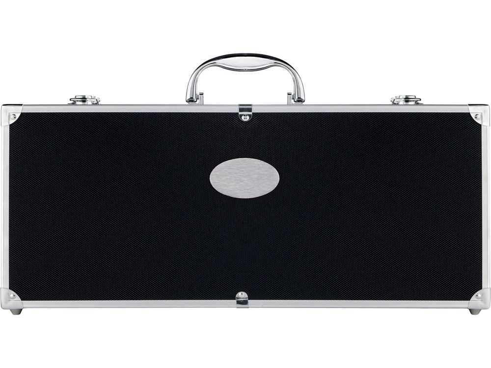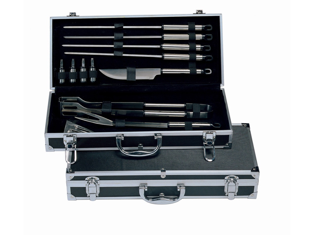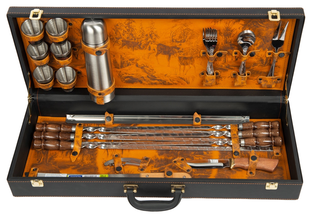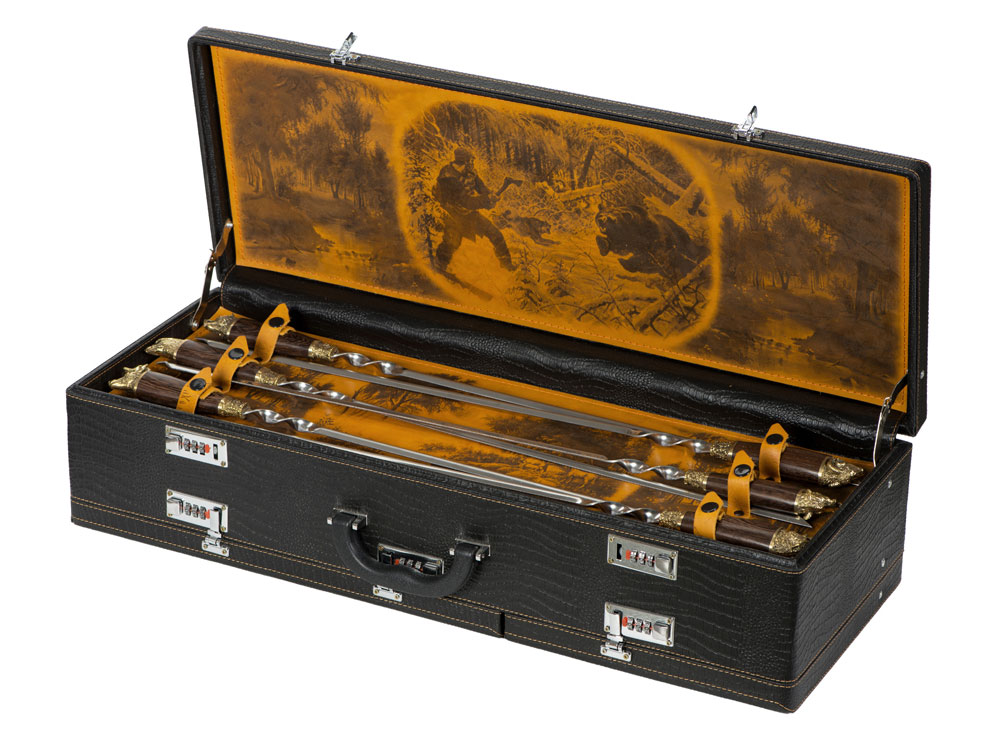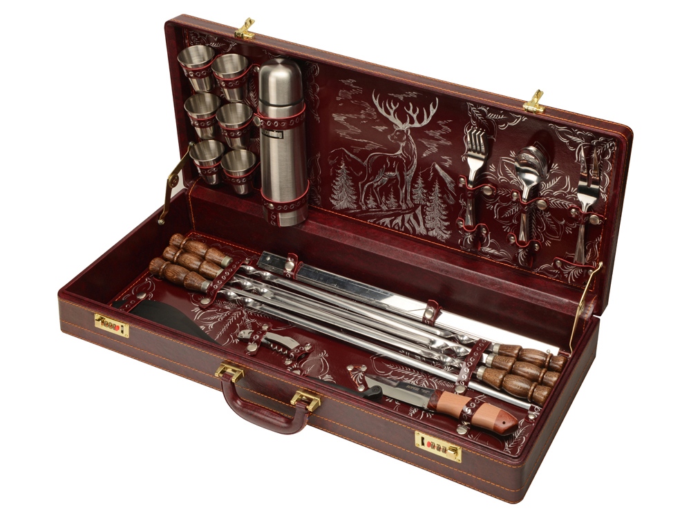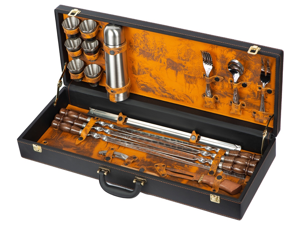 в наличии 2152 штНабор для барбекю 12 предметов. 4 шампура, 4 шпажки для снятия шашлыка, нож, щипцы, вилка, лопатка. Шильд в комплекте 4,8 х 8,3 см. Гравировка (оптоволоконный лазер) (Без чернения) на данный товар осуществляется бесплатно. Оплачивается только настройка оборудования в размере 1100 рублей на весь тираж.
