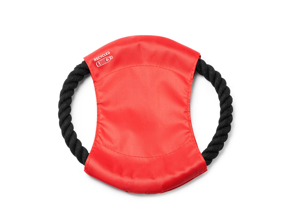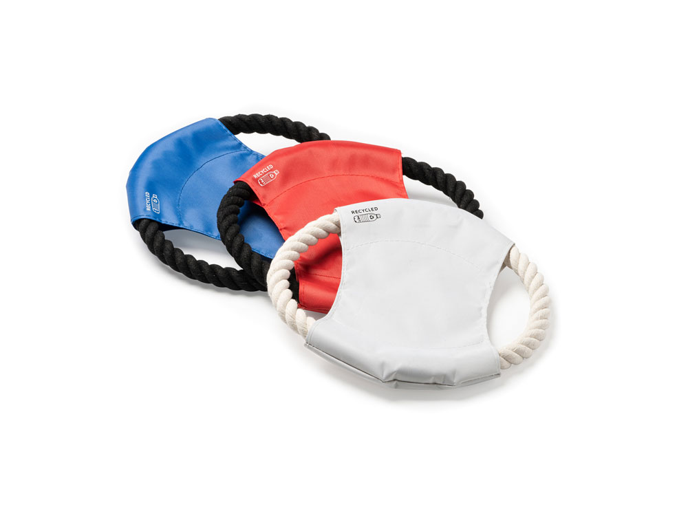 Фрисби для домашних животных с центральной вставкой из RPET и хлопчатобумажной веревкой. Термотрансфер (1 цвет (цветные изделия)) на данный товар осуществляется бесплатно. Оплачивается только настройка оборудования в размере 10000 рублей на весь тираж.