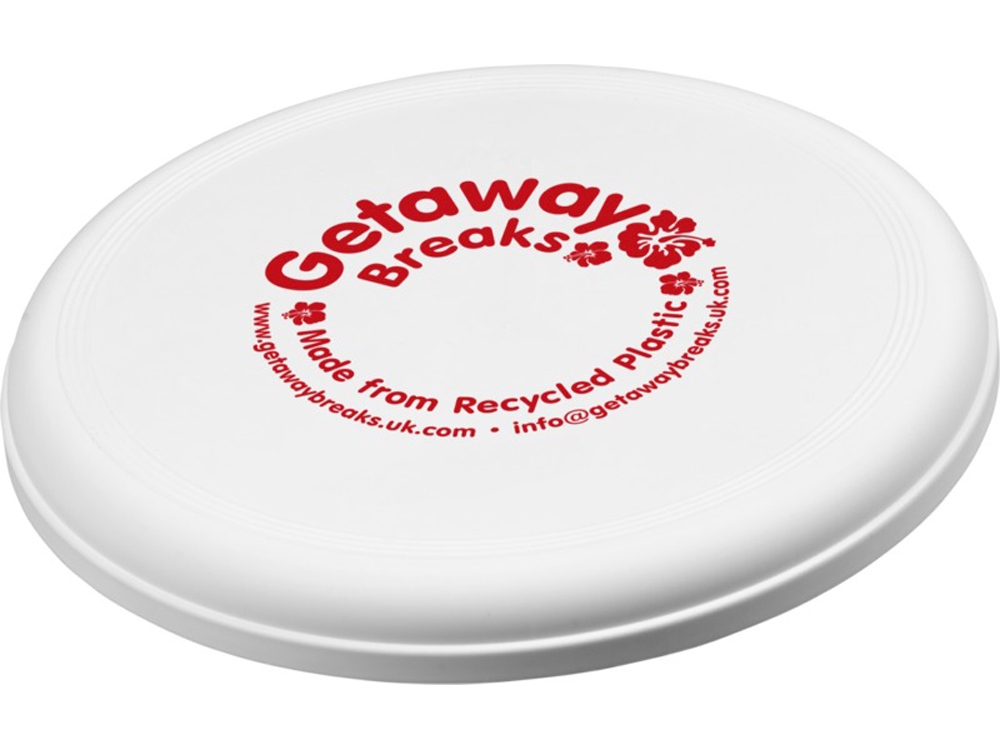 Фрисби, изготовленное из 100% переработанной пластмассы, сочетает в себе забавную идею для рекламы и экологичность. Сделано в Соединенном Королевстве. Отвечает стандарту EN72. Трафаретная печать по твердым материалам (1 цвет (белые изделия)) на данный товар осуществляется бесплатно. Оплачивается только настройка оборудования в размере 6400 рублей на весь тираж.