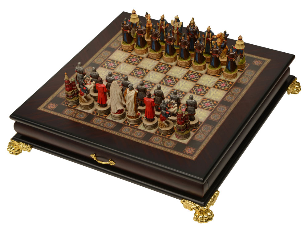 Шахматы - это настольная интеллектуальная игра, которая насчитывает не менее полутора тысяч лет. Можно сказать, что она сочетает в себе элементы искусства, науки и спорта. Шахматы Карл IV изготовлены в средневековом стиле, где величественные фигуры скрасят вечер в приятной компании. За шахматной игрой и долгими размышлениями можно параллельно провести полезные деловые переговоры. Шахматы - это идеальный подарок для бизнесмена, предпринимателя, руководителя и любого человека, который привык принимать верные решения.
