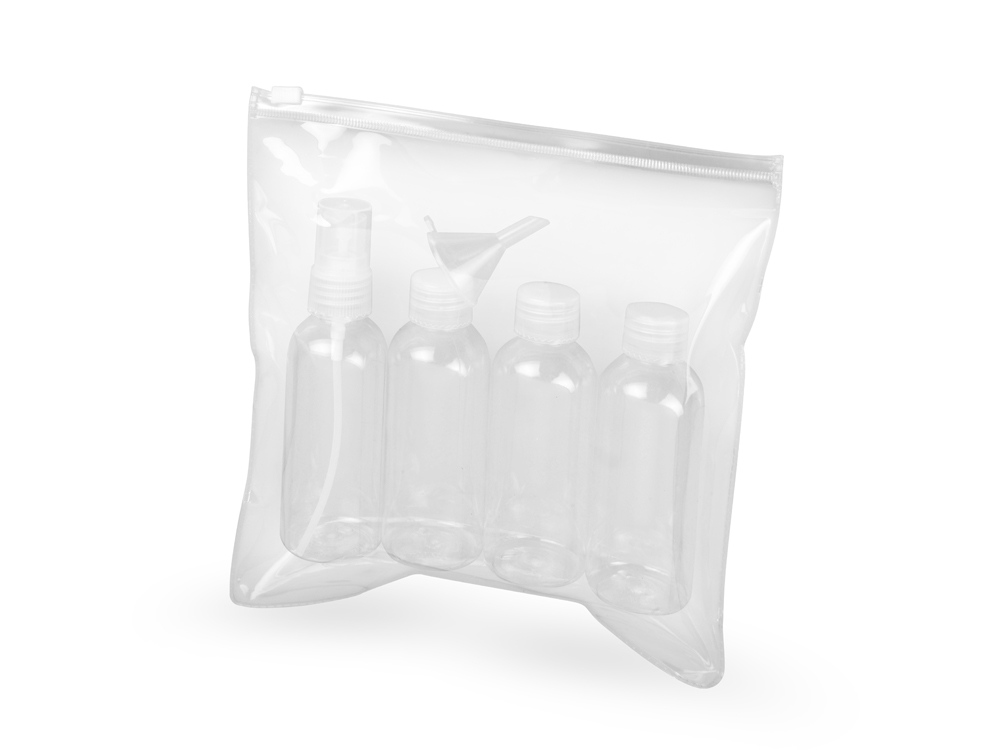 Собирая чемодан, мы всегда стремимся уменьшить вес и объем дорожной сумки. Дорожный набор Tokyo в этом деле первый помощник. В набор входят три бутылки, объемом в 80 мл., 1 бутылка-спрей и мини-воронка. В эти бутылочки легко перелить необходимые косметические средства, чтобы не тащить с собой целый флакон. Упакован в прозрачную пластиковую косметичку на застежке Zip-lock. Тампопечать (1 цвет (цветные изделия)) на данный товар осуществляется бесплатно. Оплачивается только настройка оборудования в размере 8200 рублей на весь тираж.