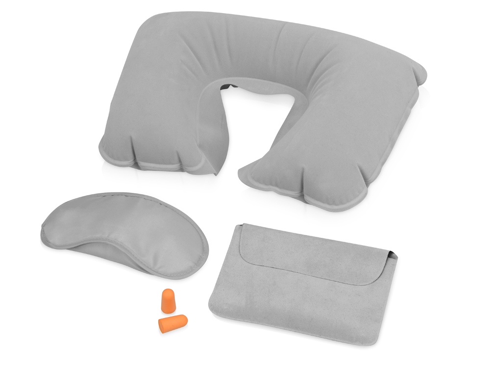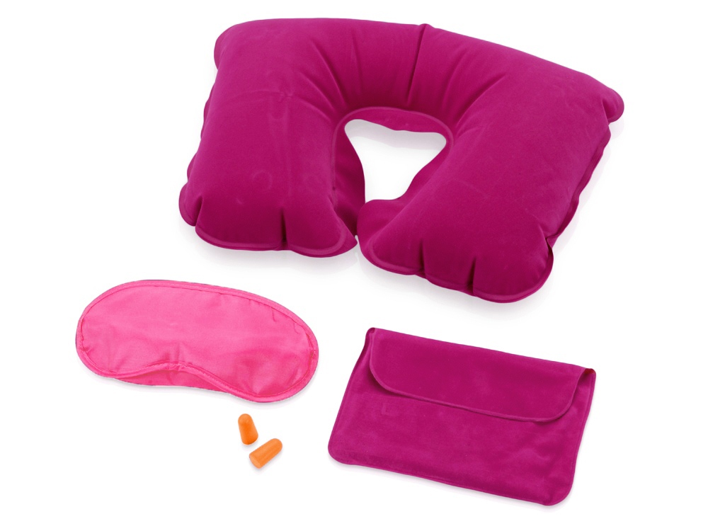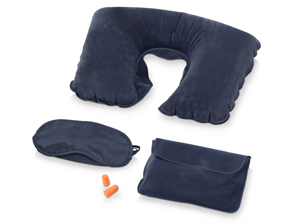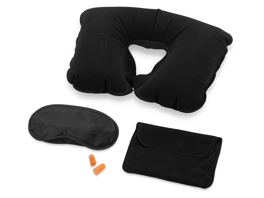 в наличии 1033 штЗамечательный дорожный набор включает в себя надувную подушку, маску на глаза и беруши, все это упаковано в специальный чехол. Приятная на ощупь поверхность набора обеспечит комфортный сон в любой обстановке. Термотрансфер (1 цвет (цветные изделия)) на данный товар осуществляется бесплатно. Оплачивается только настройка оборудования в размере 10000 рублей на весь тираж.
