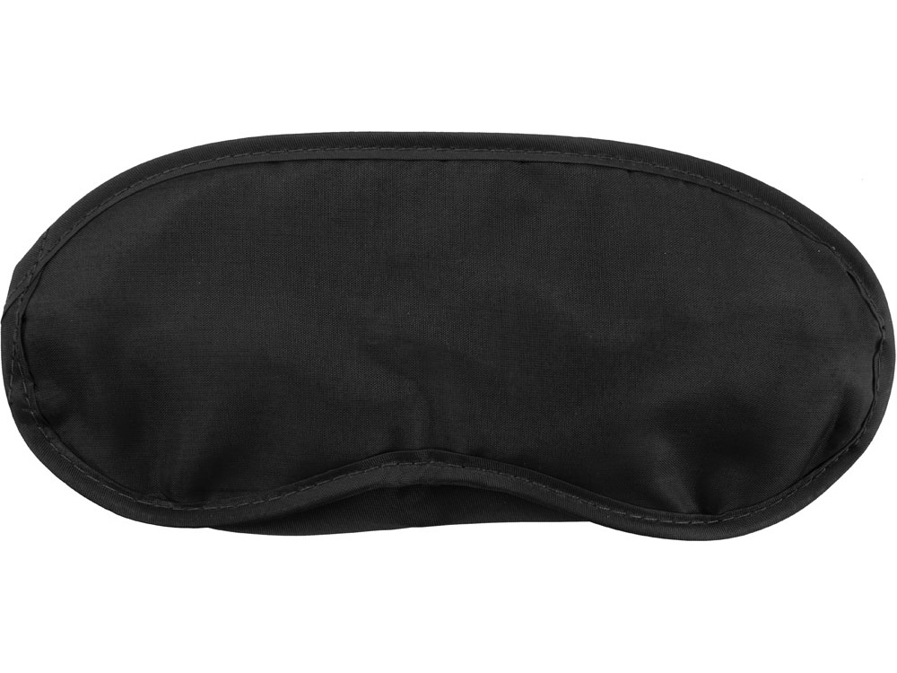 Маска для глаз с двумя черными эластичными завязками. Отличный способ продвижения вашего бренда среди чутко спящих, частых путешественников, сменных рабочих и занятых предпринимателей. Полиэстер.