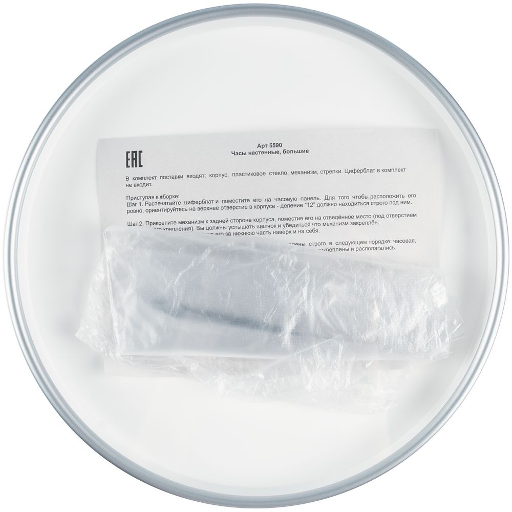 Часы с печатью поставляются в собранном виде. Часовая, минутная и секундная стрелки — серебристого цвета.