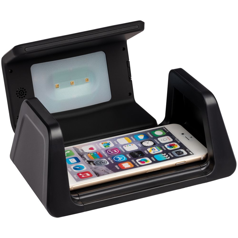 UV Depot — многофункциональное устройство, которое сочетает в себе функции настольных часов, будильника, станции для беспроводной и проводной зарядки устройств и стерилизатора.