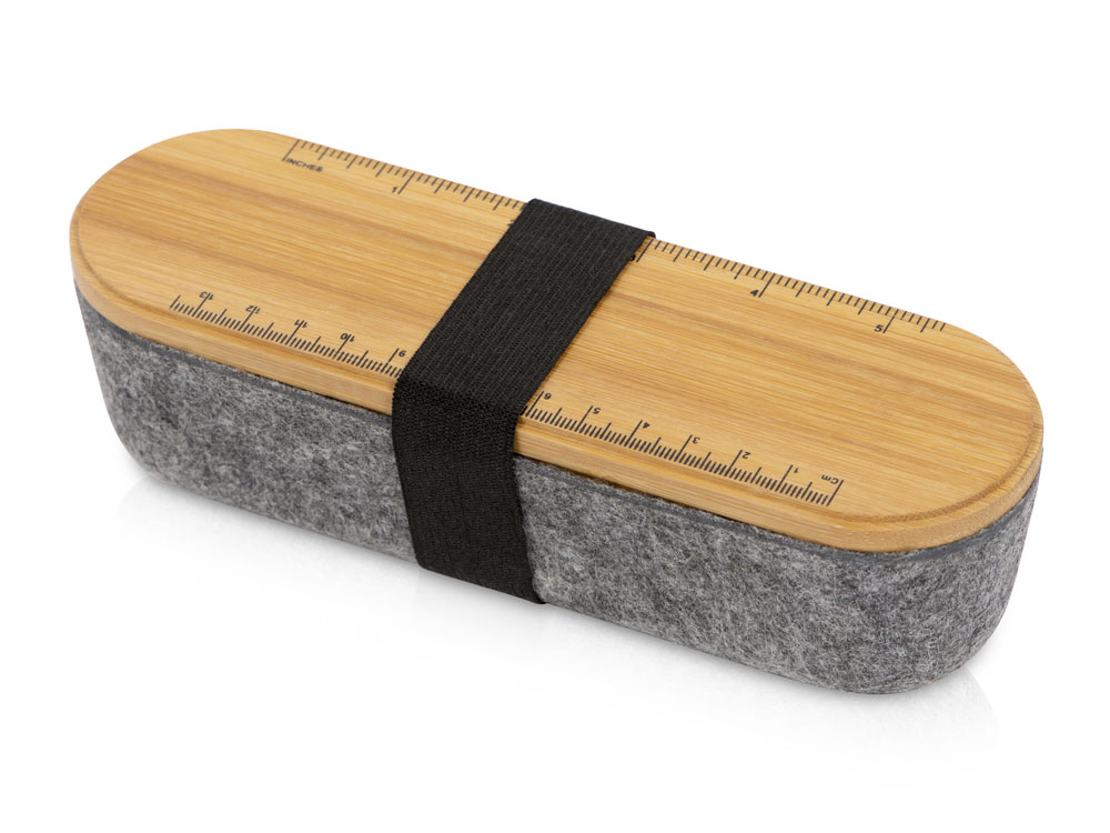 Пенал для ручек и карандашей с бамбуковой крышкой. На крышке есть линейка с несколькими метрическими системами, с оборотной стороны крышки находится выемка, которая может служить подставкой для телефона. Гравировка (CO2 лазер) (Без чернения) на данный товар осуществляется бесплатно. Оплачивается только настройка оборудования в размере 1100 рублей на весь тираж.
