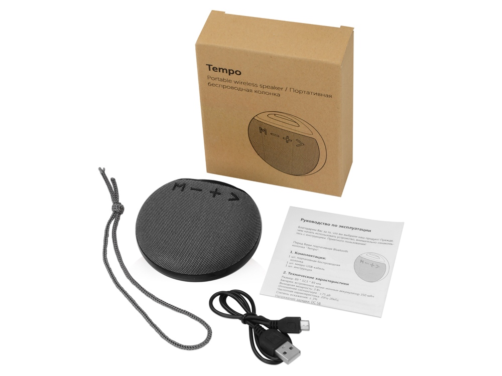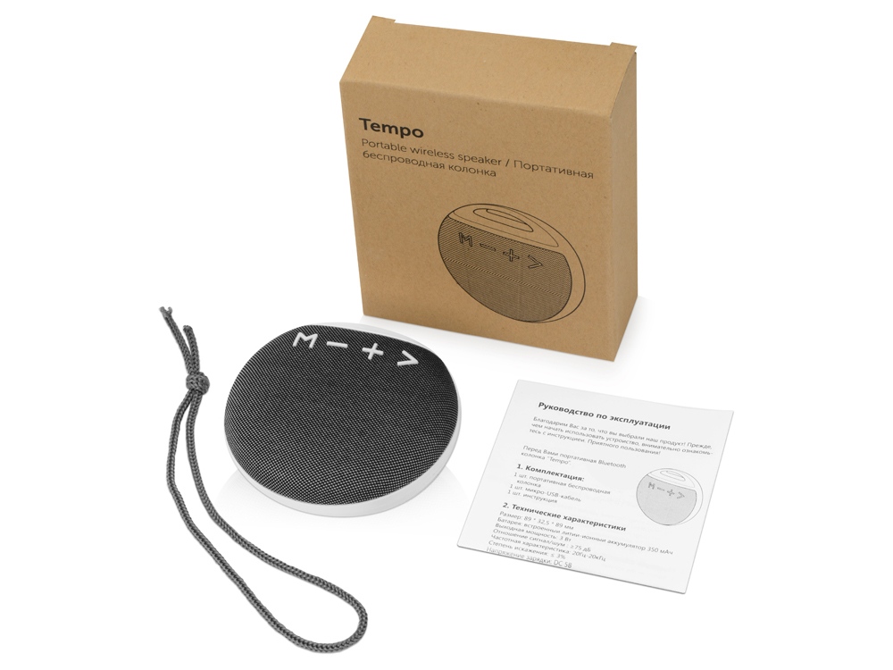 Если вы ищите надежную и стильную портативную колонку, закажите Tempo! Она выигрышно подчеркнет бренд компании с помощью таких методов, как термотрансфер, УФ-печать и тампопечать. У Tempo стильный дизайн, контрастный цвет кнопок и задней крышки, а также удобное крепление для переноски. Колонка обтянута акустической тканью, проигрывает музыку со стандартной USB флешки или micro SD карты. Tempo позволяет принимать звонки и имеет режим радио. Тампопечать (1 цвет (белые изделия)) на данный товар осуществляется бесплатно. Оплачивается только настройка оборудования в размере 6400 рублей на весь тираж.