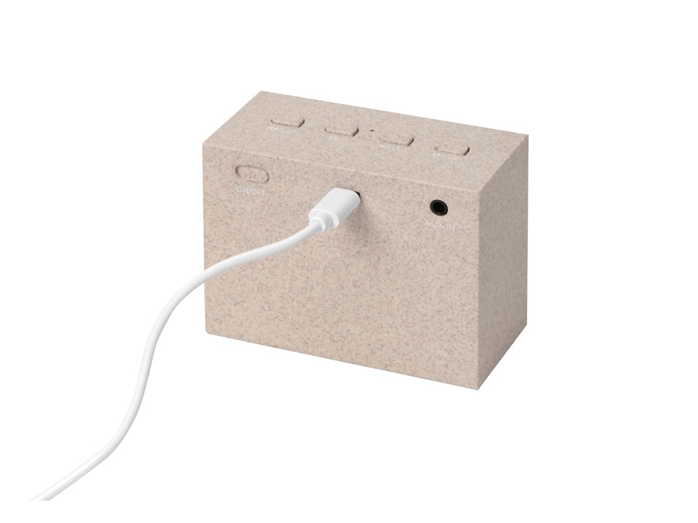 Беспроводная колонка Wheatty на 35% состоит из переработанной пшеничной соломы, что является положительным примером сокращения производства и потребления пластика в мире. Воспроизводит музыку в течение 3-х часов. Мощность 3 Вт. В колонке предусмотрены кнопки управления и линейный вход (AUX). Компактная колонка с быстрым подключением (Bluetooth 5.0). Поставляется в крафт упаковке из переработанной бумаги. Тампопечать (1 цвет (цветные изделия)) на данный товар осуществляется бесплатно. Оплачивается только настройка оборудования в размере 8200 рублей на весь тираж.