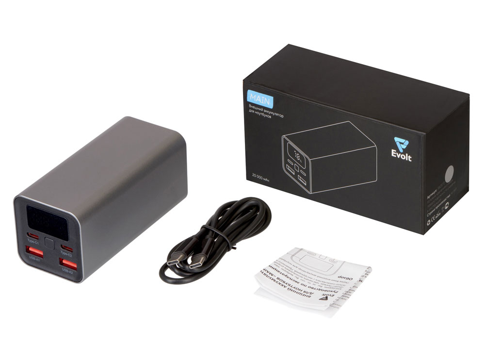 Надежный аккумулятор в металлическом корпусе, который снабжен многоуровневой защитой от скачков напряжения и коротких замыканий. Предназначен не только для ноутбуков*, но и может супер быстро зарядить планшеты и смартфоны (можно подключить до 4-х устройств). Уровень заряда отображается на дисплее, на котором также отображаются текущие напряжение и сила тока. Быструю зарядку теперь можно увидеть в прямом эфире. Кабель с поддержкой зарядки 65 Вт уже в комплекте.