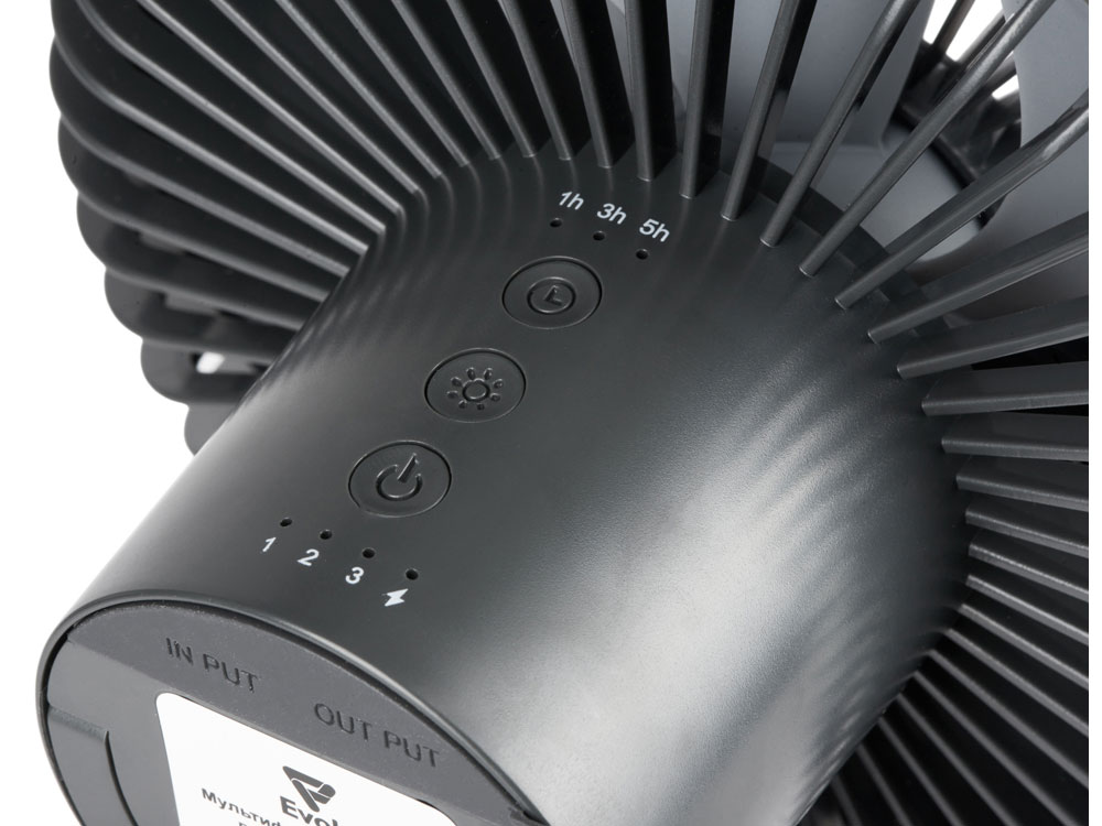 Световой индикатор отображает процесс зарядки вентилятора, позволяющий определить, когда устройство полностью заряжено или скоро разрядится (время зарядки 3-4 часа).