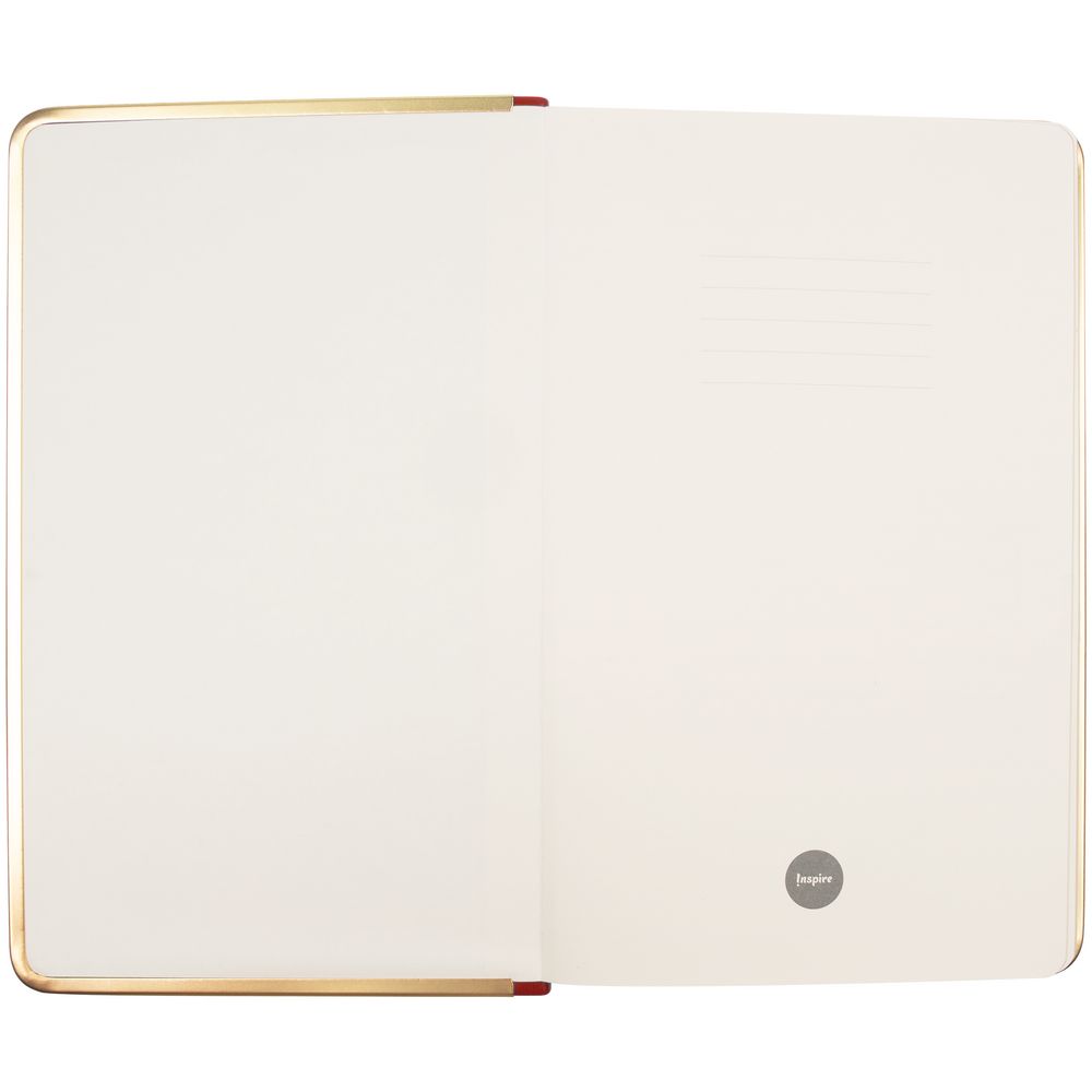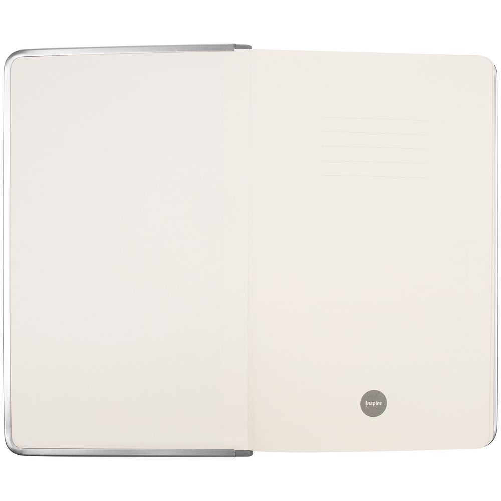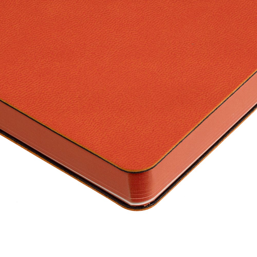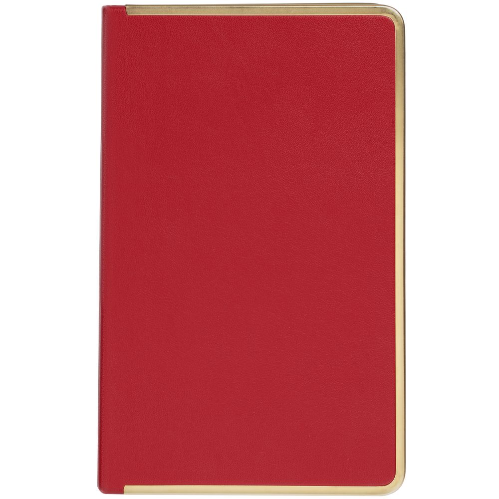 Изящный ежедневник с зауженным блоком и стильными деталями — металлической окантовкой на обложке и металлизированным обрезом.