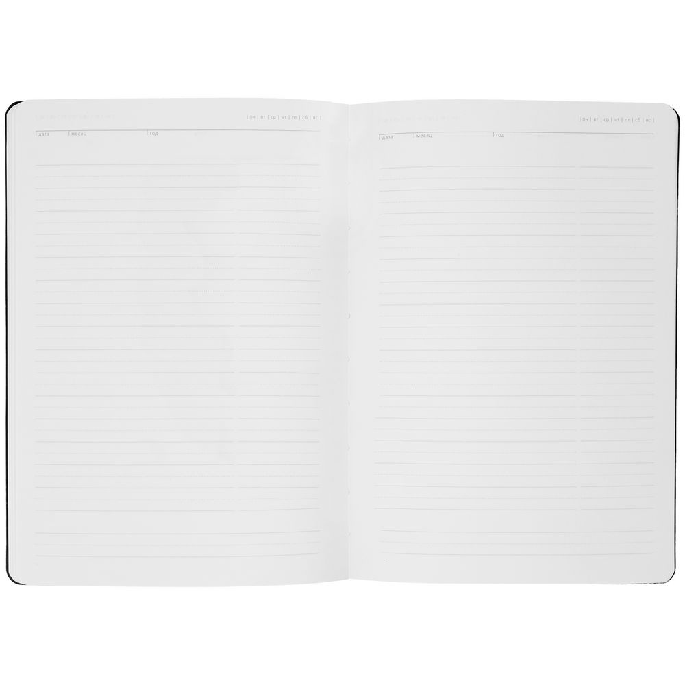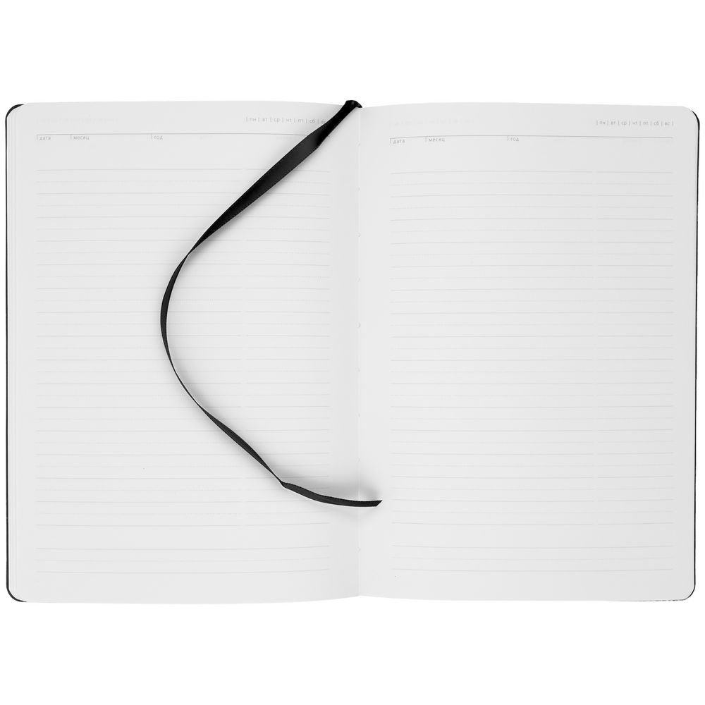 в наличии 7000 шт В пути на склад 2727 штЕжедневник с твердой обложкой без поролона, выполнен из материала Nebraska, черный АА, дополнен ляссе и капталом в цвет обложки.Блок 912: датированный, с информационным блоком.Датирован на 2025 год;Кол-во страниц — 336;Бумага — белая, плотность 70 г/м²;Форзац и нахзац — белые.