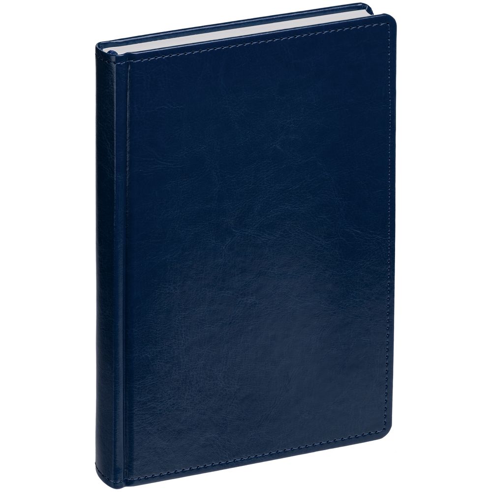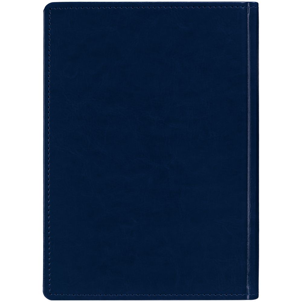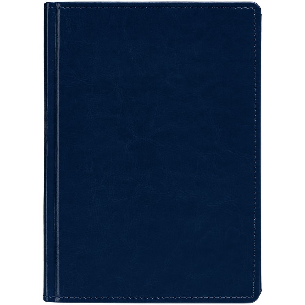 Ежедневник с твердой обложкой. Выполнен из материала Latte, темно-синий, дополнен ляссе в цвет обложки.