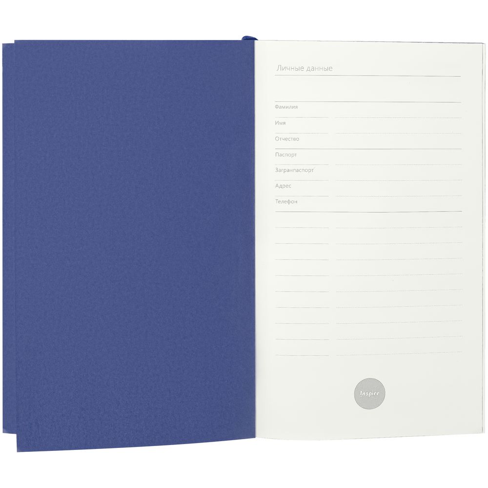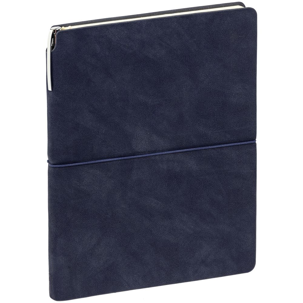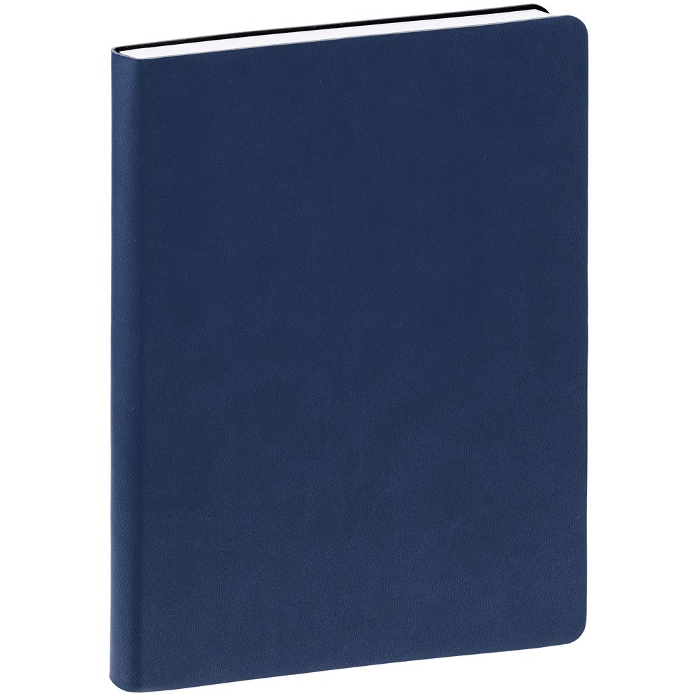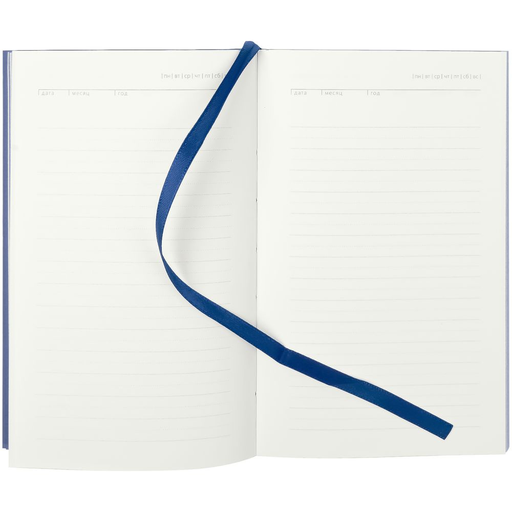 Ежедневник с твердой обложкой. Выполнен из материала Latte, темно-синий, дополнен ляссе в цвет обложки.