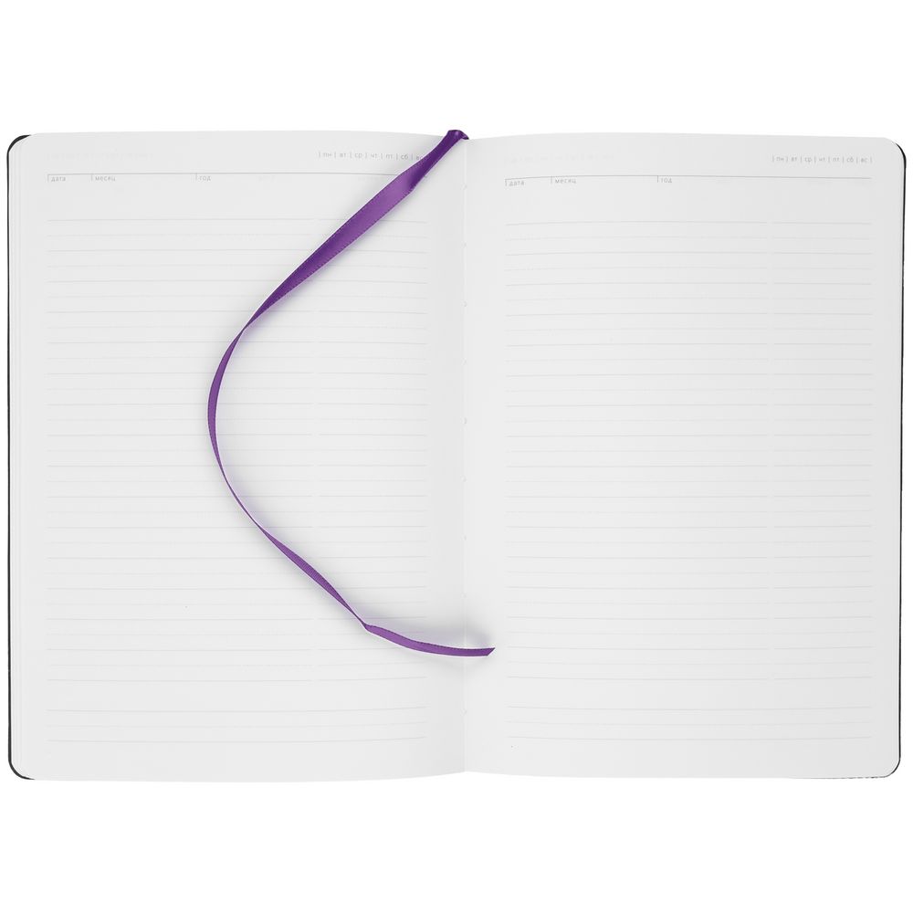 Ежедневник с твердой обложкой без поролона, выполнен из материала Nebraska, черный АА, дополнен ляссе и капталом в цвет обложки.