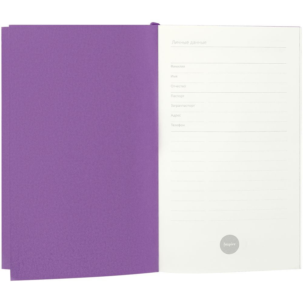 Двойной карман на нахзаце.Поставляется в индивидуальном полиэтиленовом пакете и с картонными вкладышами, отделяющими обложку от резинки.