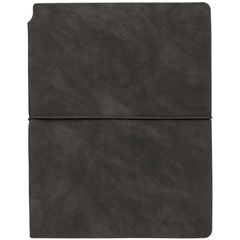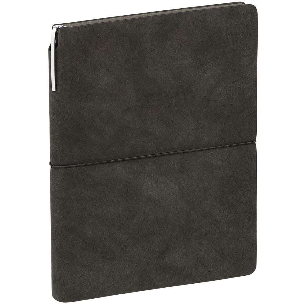 Ежедневник с твердой обложкой, выполнен из материала Latte, темно-серый ЕЕ, дополнен ляссе в цвет обложки.