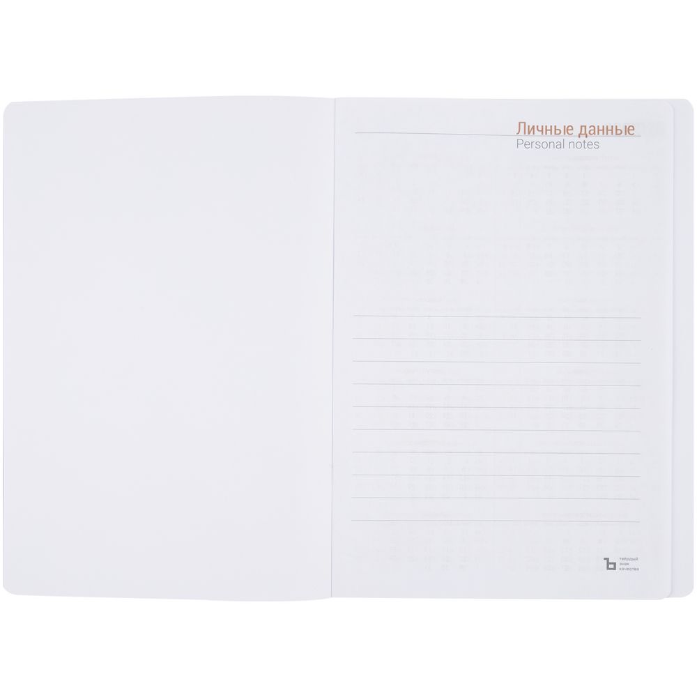 в наличии 19944 шт В пути на склад 151 штЕжедневник с гибкой обложкой, выполнен из материала Latte, серый, дополнен ляссе в цвет обложки.Блок недатированный, без календарной сетки:Кол-во страниц — 256;Бумага — тонированная, плотность 70 г/м²;Обрез блока — серый.