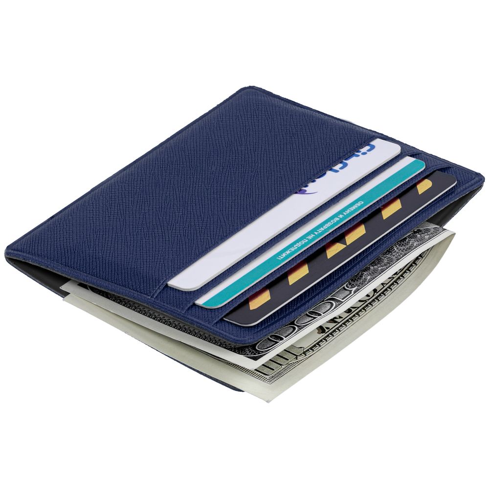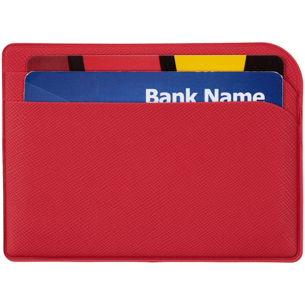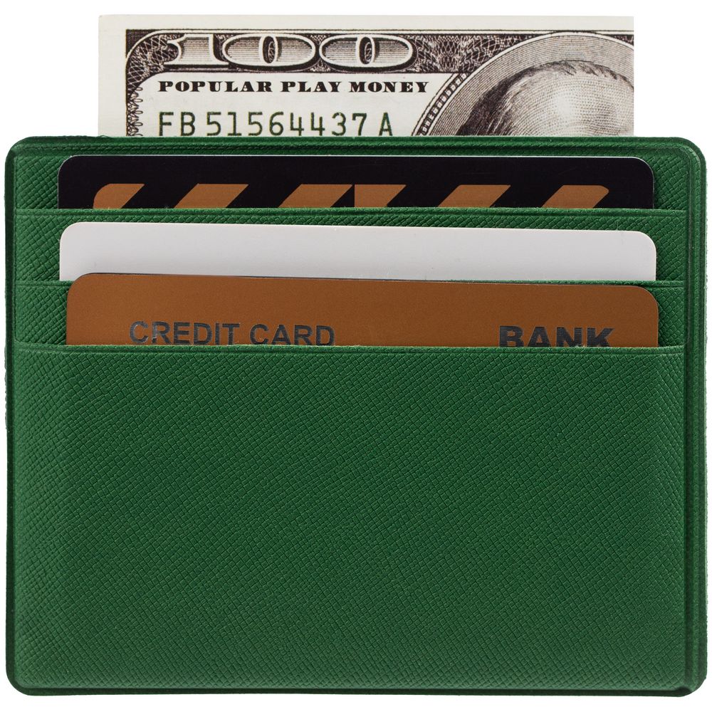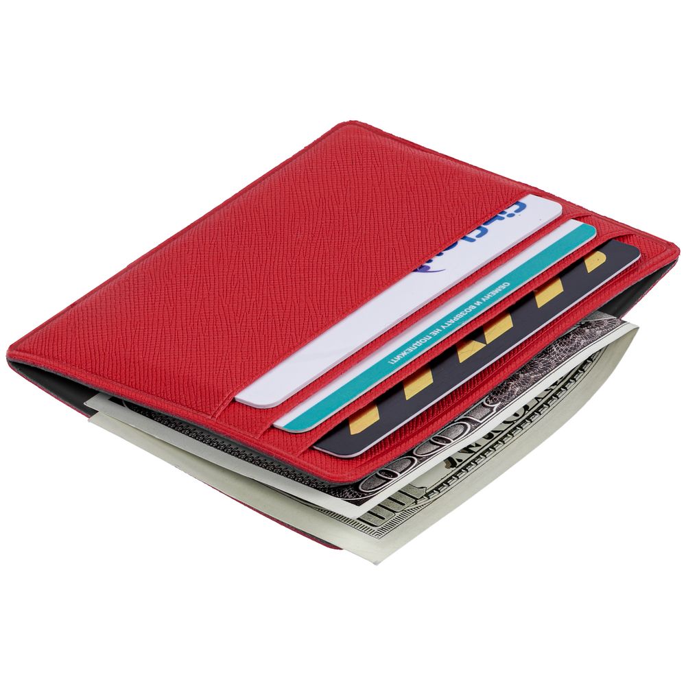 Чехол для карточек из искусственного материала, имитирующего сафьяновую кожу, с шестью отделениями для кредитных карт и одним — для сложенных купюр. -