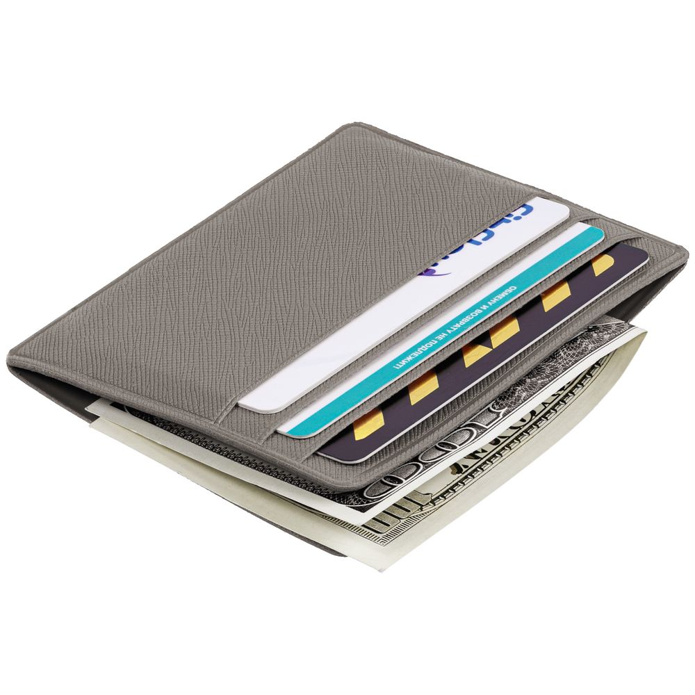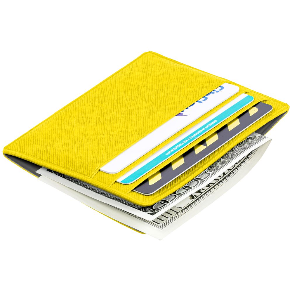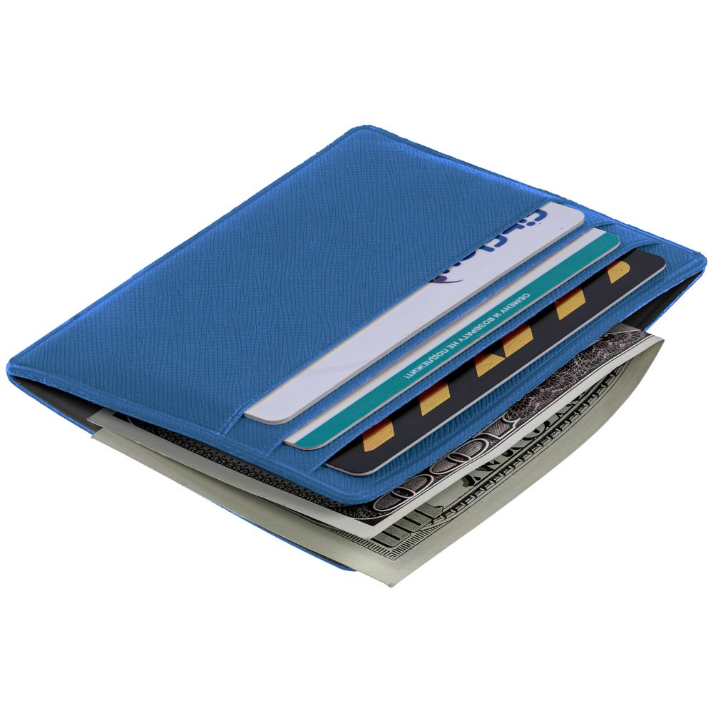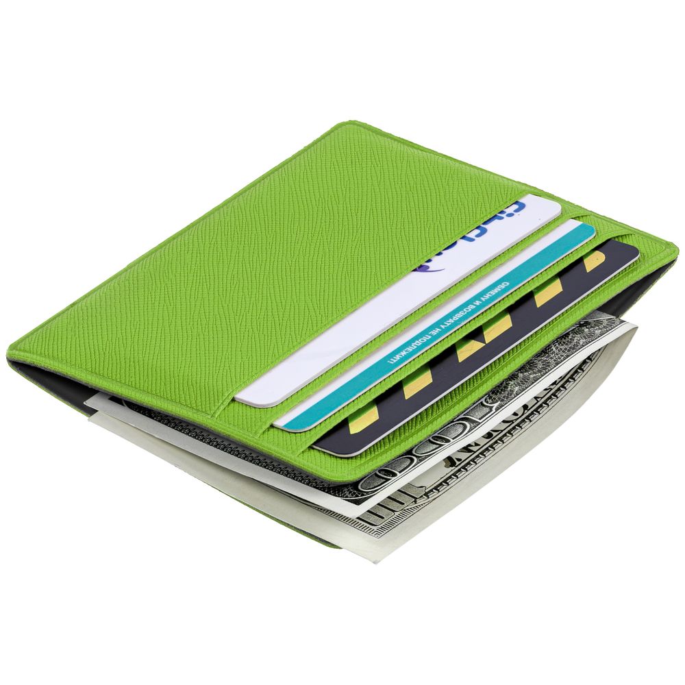 Чехол для карточек из искусственного материала, имитирующего сафьяновую кожу, с шестью отделениями для кредитных карт и одним — для сложенных купюр. -