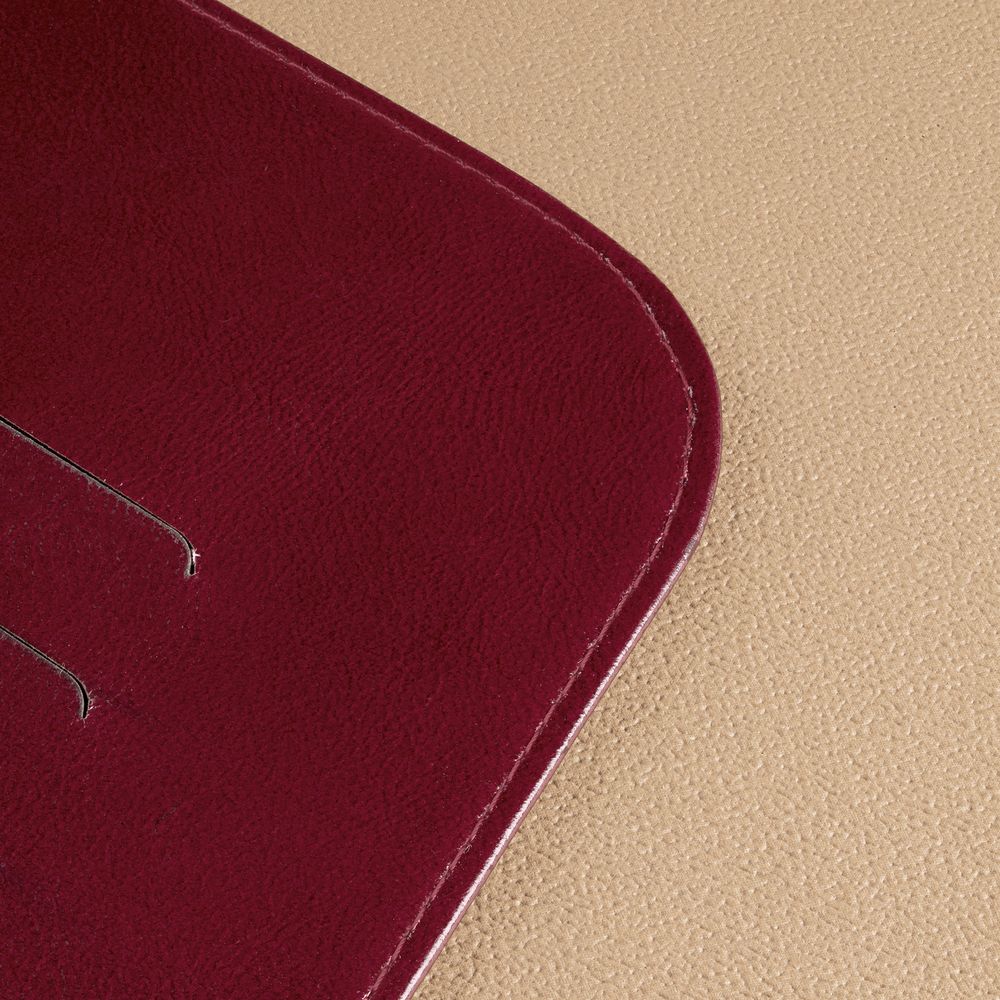 Выполнена из искусственного материала, имитирующего сафьяновую кожу.Полноцветная печать с одной стороны входит в стоимость изделия.
