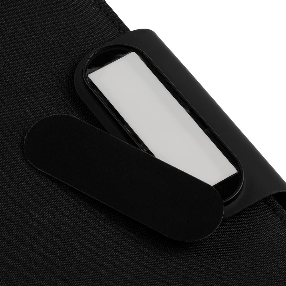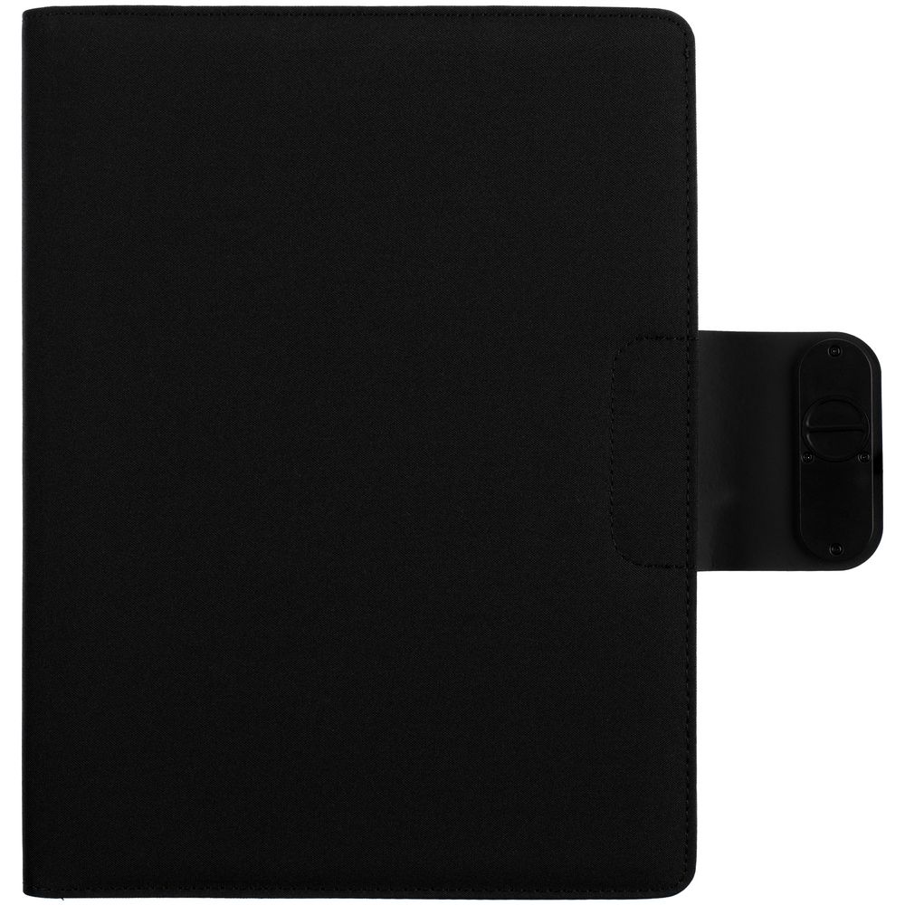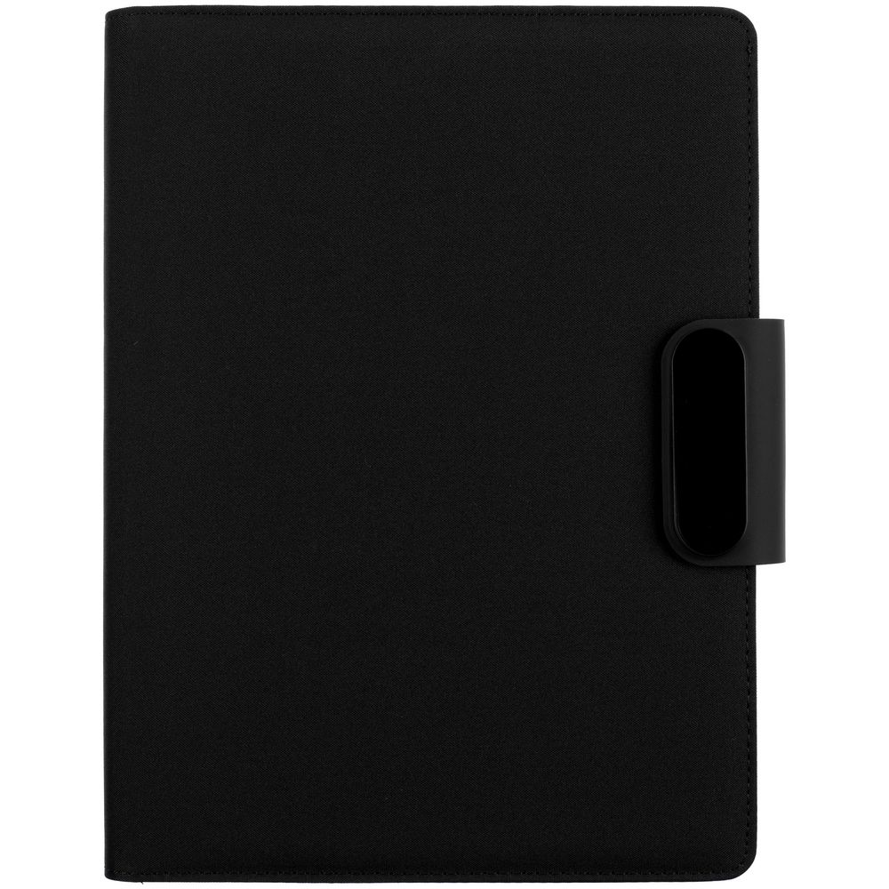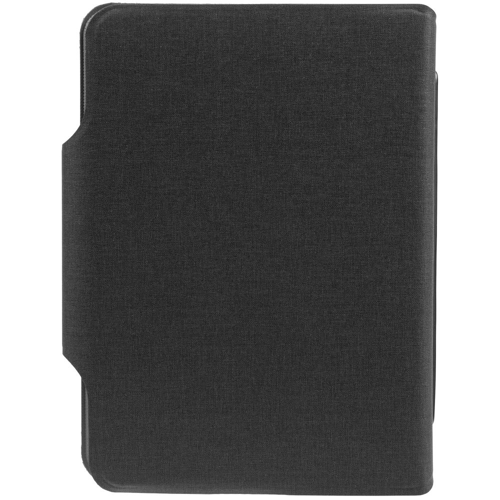Органайзер с блокнотом и аккумулятором с беспроводной зарядкой. Обложка с фактурой, имитирующей ткань, на магнитной застежке.