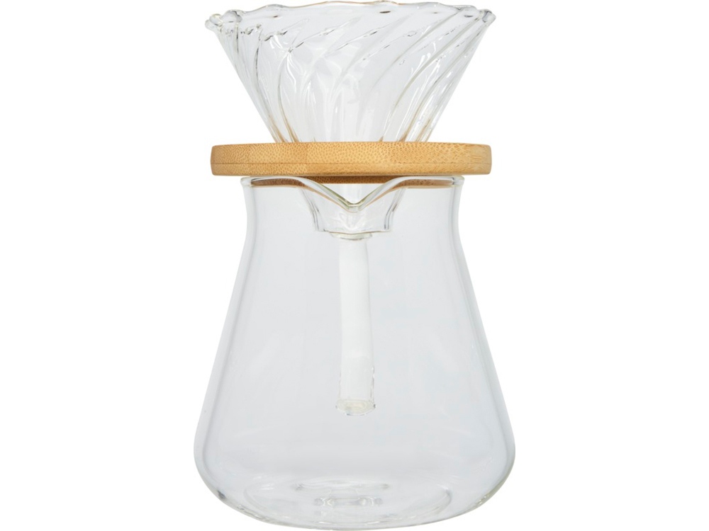 Кофеварка для эспрессо из термостойкого стекла объемом 500 мл. Съемный фильтр. Используется с бумажным фильтром. Держатель из бамбука из устойчивых, экологически и социально ответственных источников.