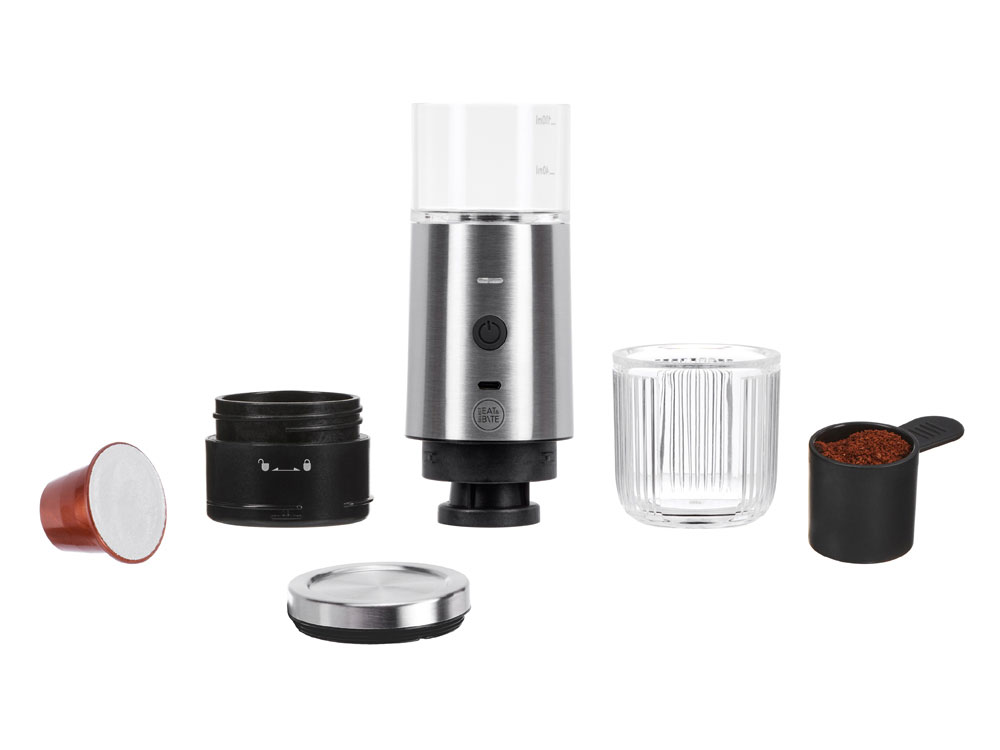 в наличии 0 шт В пути на склад 2000 штВыпить свежесваренный кофе на пикнике? Нет ничего проще! С портативной кофемашиной от бренда Eat&Bite select кофе всегда будет у Вас под рукой! Приготовить можно 2 вида кофе — эспрессо и лунго (40 и 100 мл) двумя способами: заварить молотый кофе или капсулу. Для каждого способа заваривания есть своя ёмкость. Мерная ложечка для молотого кофе идёт […]