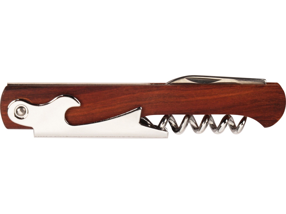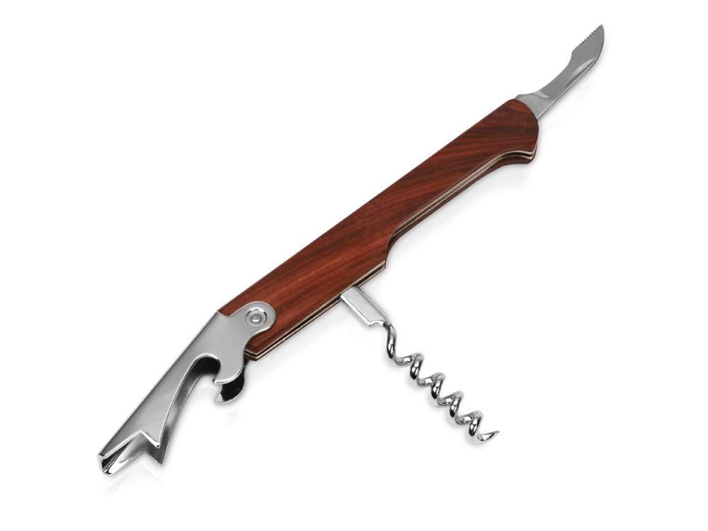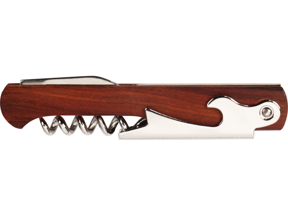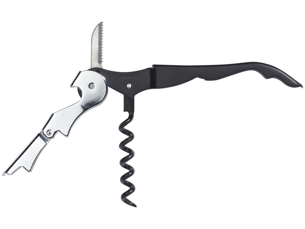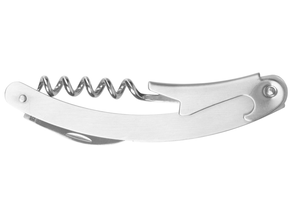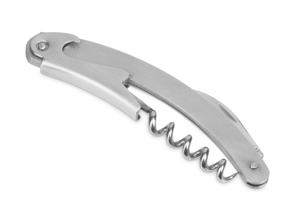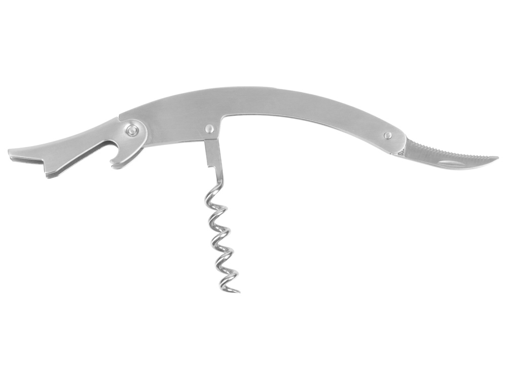 Штопор с буравчиком, открывалкой для бутылок и ножом для срезания фольги. Нержавеющая сталь. Гравировка (оптоволоконный лазер) (Без чернения) на данный товар осуществляется бесплатно. Оплачивается только настройка оборудования в размере 1100 рублей на весь тираж.
