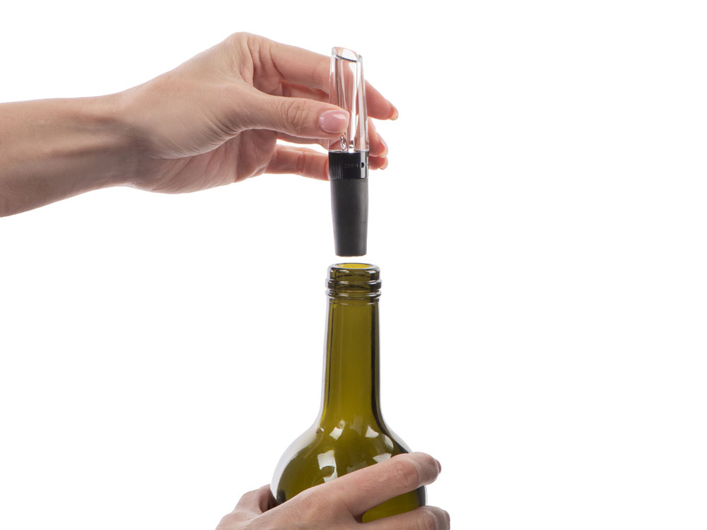 Аэратор-воронка плотно фиксируется на горлышке благодаря силиконовой вставке, проходя сквозь него напиток обогатится кислородом, что поможет раскрыть его вкус. Воронка же не даст капелькам пролиться мимо бокала.
