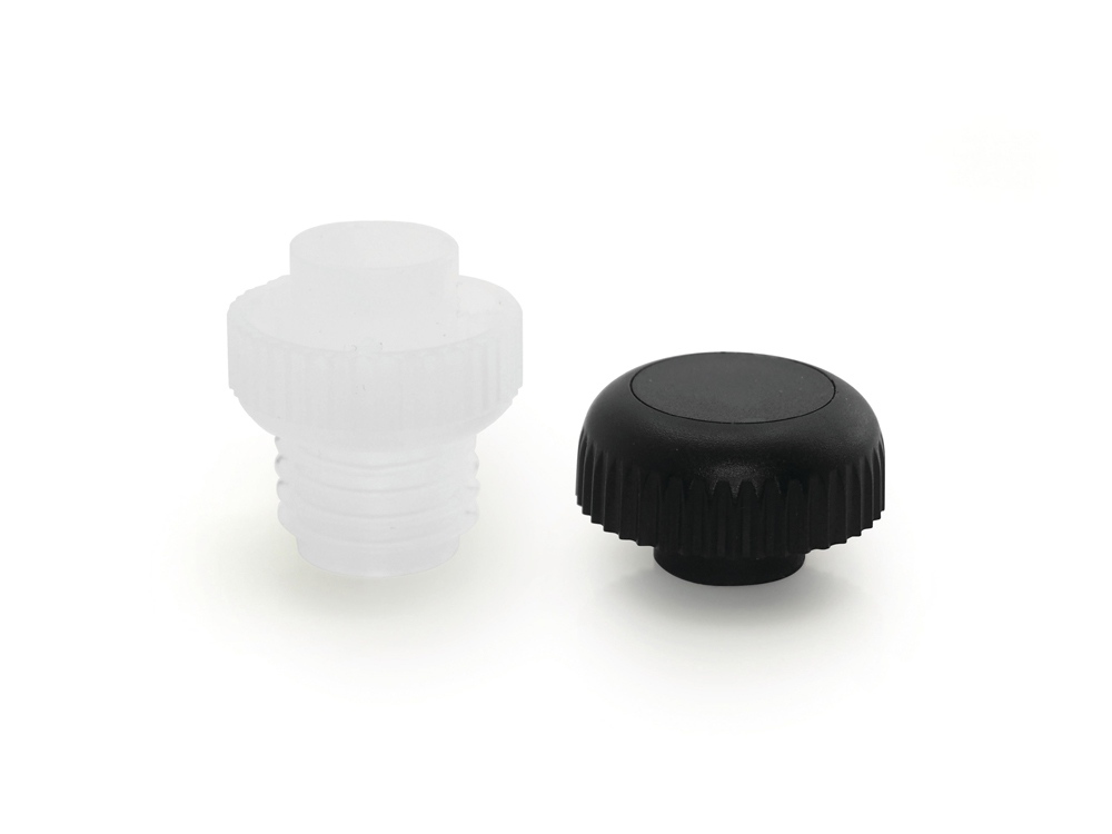 Пробка выполнена из матового пластика с вставками глянцевого, внутри корпуса — вставка из силиконовой резины для плотного прилегания к горлышку. Все использованные материалы безопасны для человека, не влияют на вкус и запах продукта.