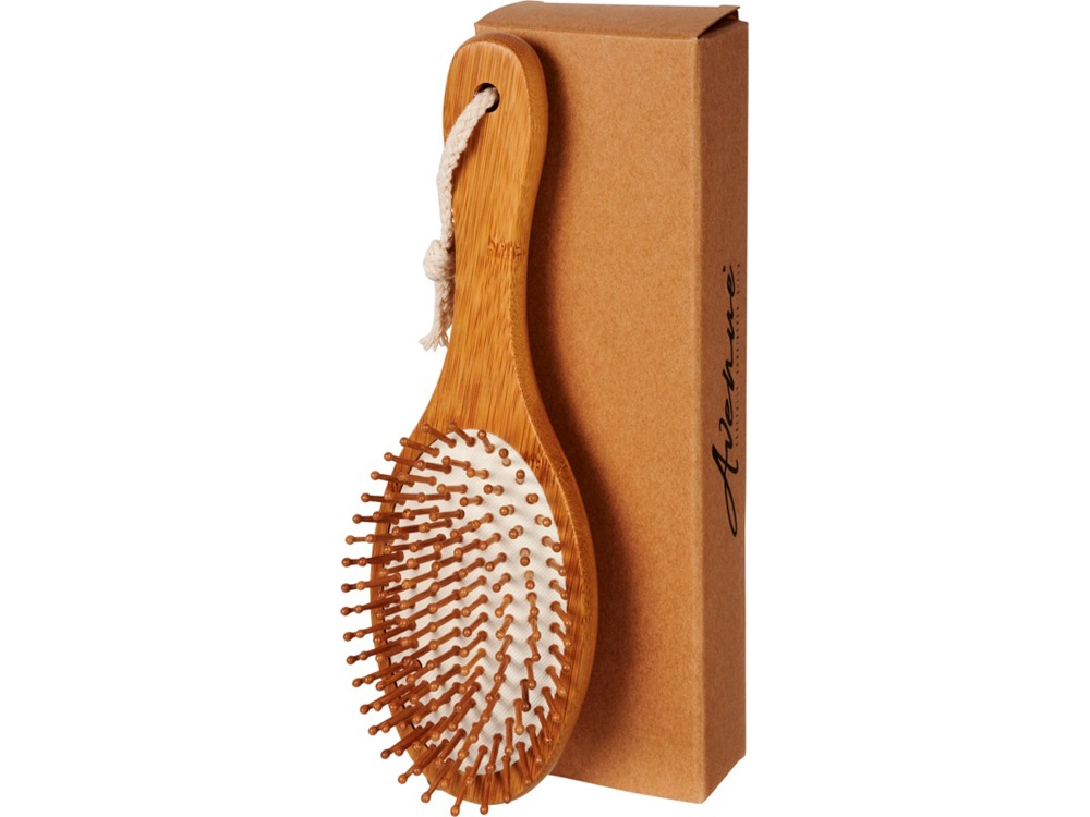 Массажная щетка для волос Bambola из бамбука бережно расчесывает сухие и влажные волосы, придает им блеск, объём и гладкость.