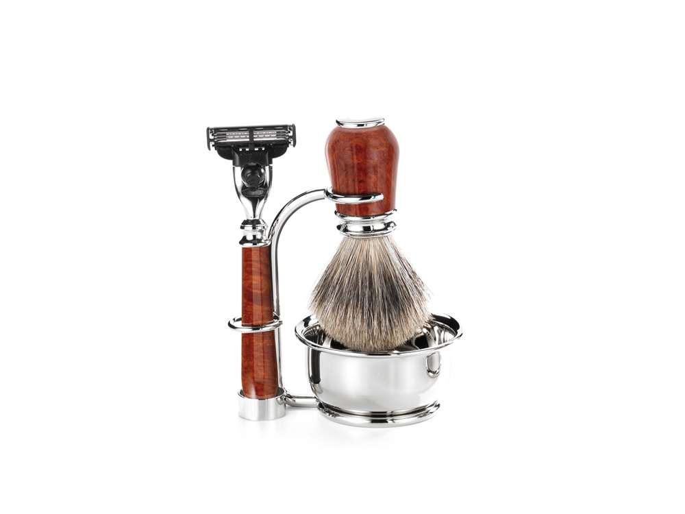 В наборе идеально сочетаются искусно обработанная древесина корня шиповника и великолепный ворс барсука.