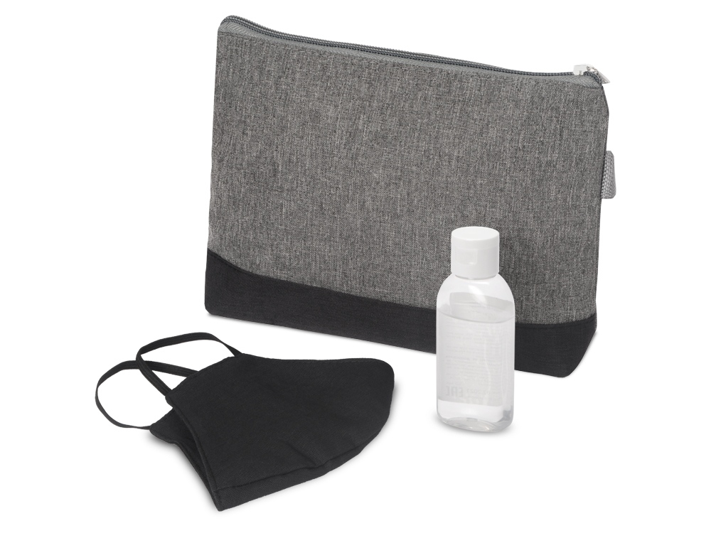 Самое необходимое всегда под рукой - в любом месте и при любой ситуации. Многоразовая хлопковая маска черного цвета и антисептик в стильной пластиковой косметичке поместятся в любой сумке. Тампопечать (1 цвет (цветные изделия)) на данный товар осуществляется бесплатно. Оплачивается только настройка оборудования в размере 8200 рублей на весь тираж.