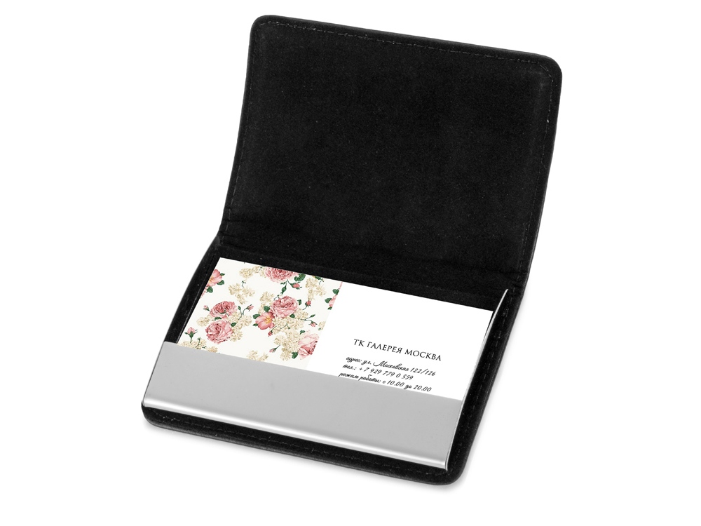 Классическая визитница в сдержанных цветах с хромированным декоративным кантом. Внутри отделана черным бархатом. Вмещает примерно 30 визиток. Гравировка (оптоволоконный лазер) (Без чернения) на данный товар осуществляется бесплатно. Оплачивается только настройка оборудования в размере 1100 рублей на весь тираж.