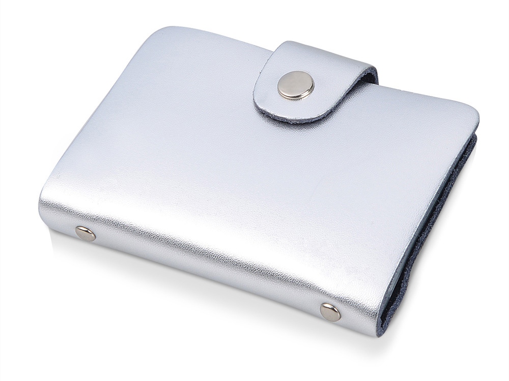 Визитница надежно сохранит 26 визиток. Неординарный внешний вид завораживает, визитница словно сделана из единого листа металла. Визитница имеет два цветовых решения: серебристый и золотой.