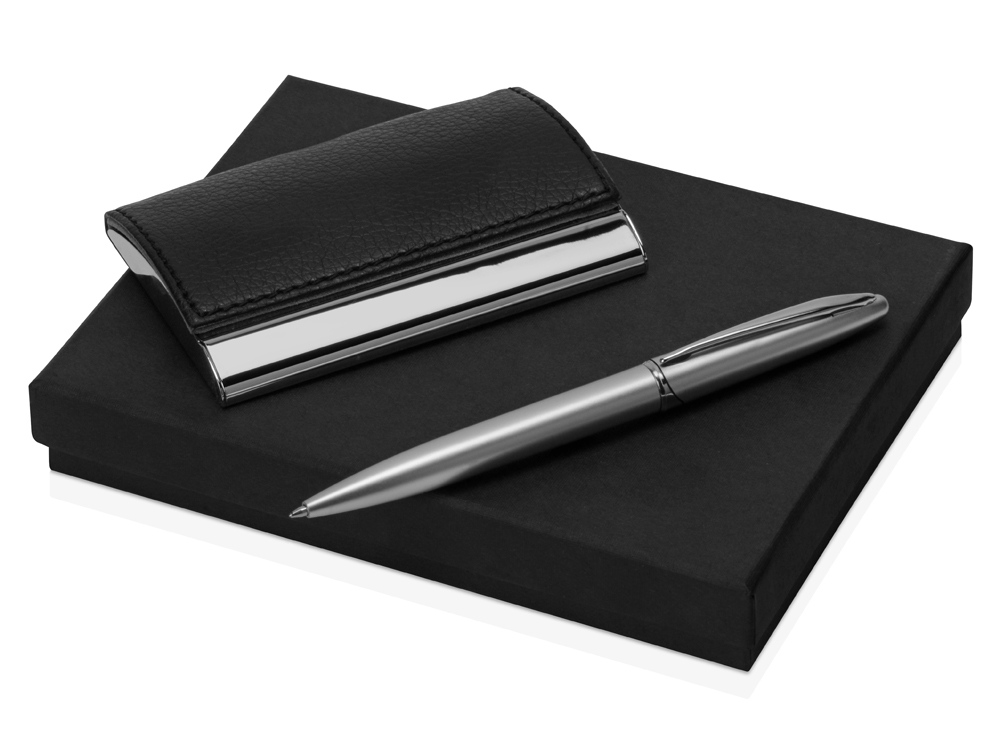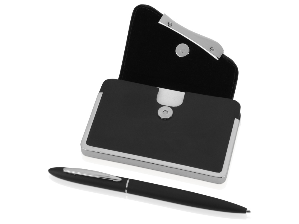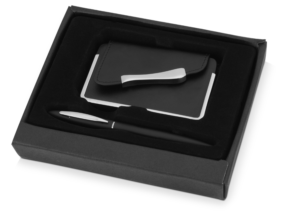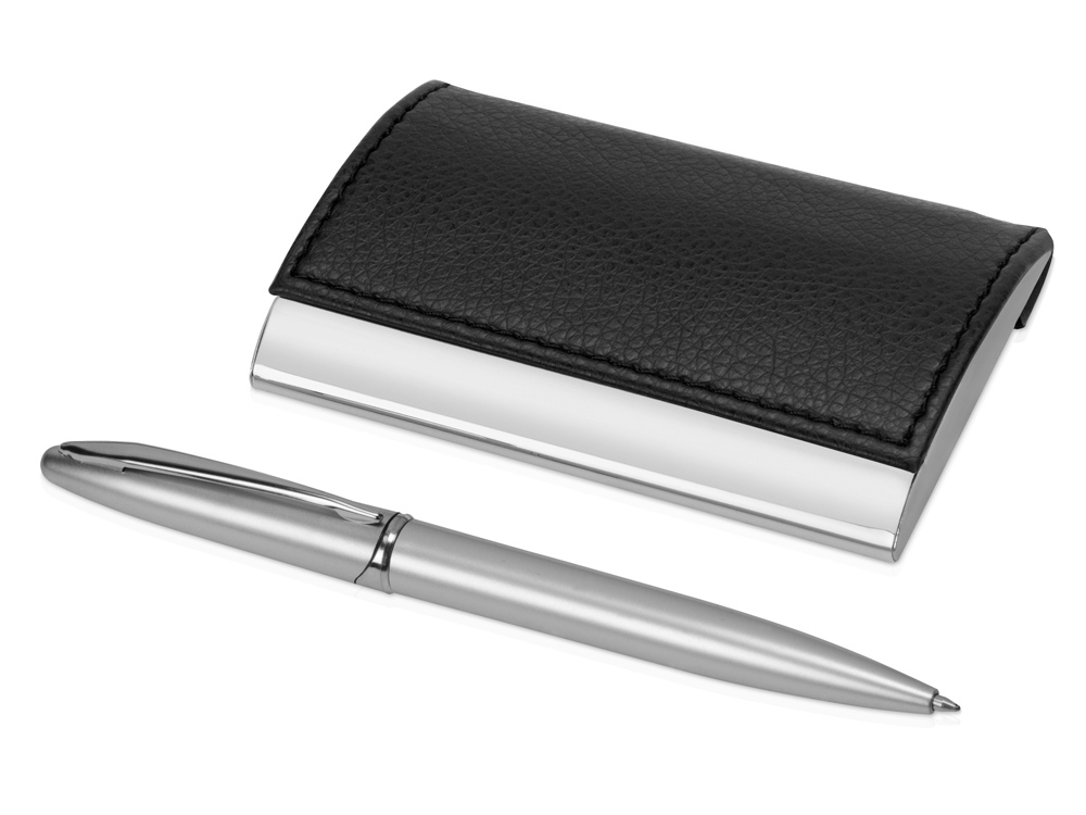 Набор из визитницы и ручки придется по вкусу деловому человеку, будь то клиент или сотрудник вашей компании. Визитница выполнена из качественного кожзама, а шариковая ручка имеет стильный пластиковый корпус – такой подарок будет оценен по достоинству! Тиснение (Фольга) на данный товар осуществляется бесплатно. Оплачивается только настройка оборудования в размере 6200 рублей на весь тираж.