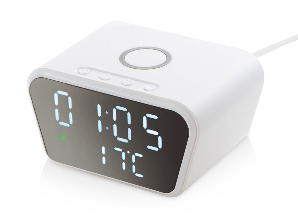 Настольные часы с функцией беспроводной зарядки позволят не только вовремя проснуться, но и восполнить за ночь уровень батареи вашего смартфона. Зеркальный LED-дисплей часов интересно выглядит в интерьере, а степень яркости можно изменить под себя.
