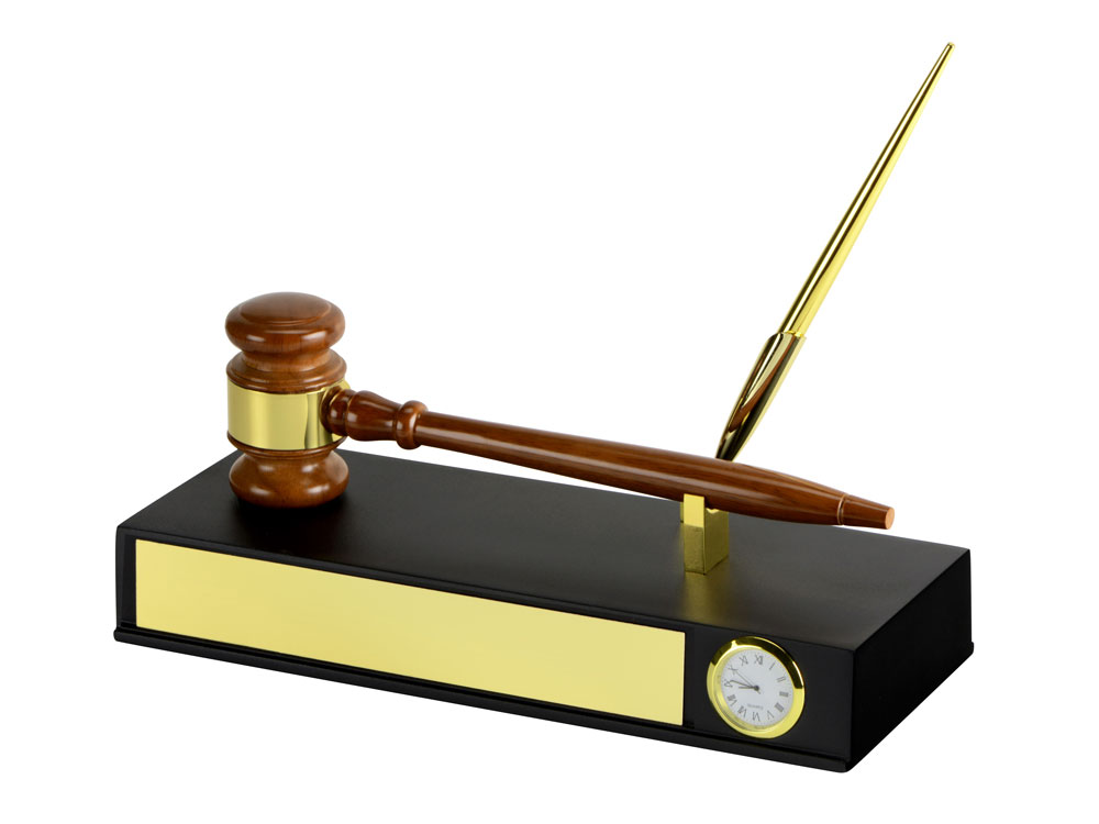В данном случае настольный прибор одновременно является символом власти. Знаете, как приятно умерить пыл сотрудников в разгар совещания легким постукиванием молоточка? Гравировка (оптоволоконный лазер) (Без чернения) на данный товар осуществляется бесплатно. Оплачивается только настройка оборудования в размере 1100 рублей на весь тираж.